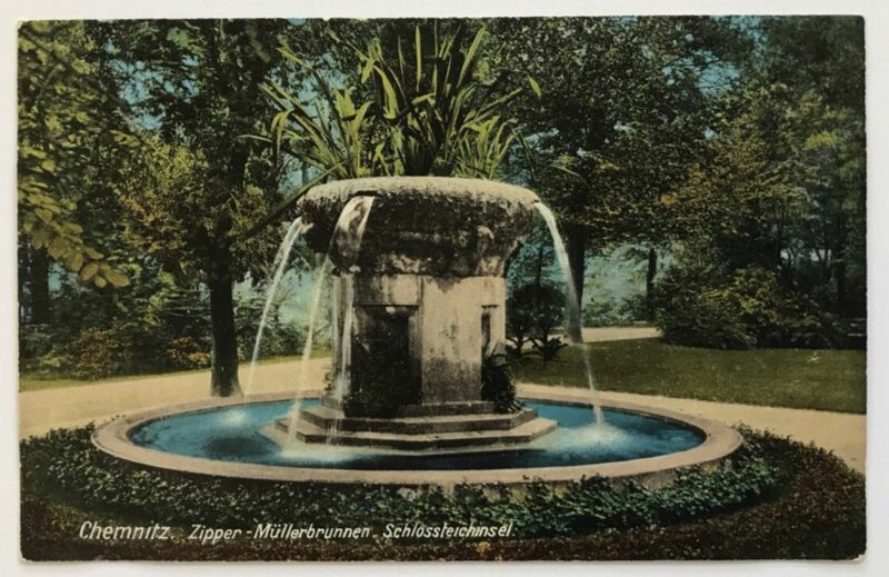 AK Chemnitz Zipper Müllerbrunnen Schlossteichinsel nicht gelaufen