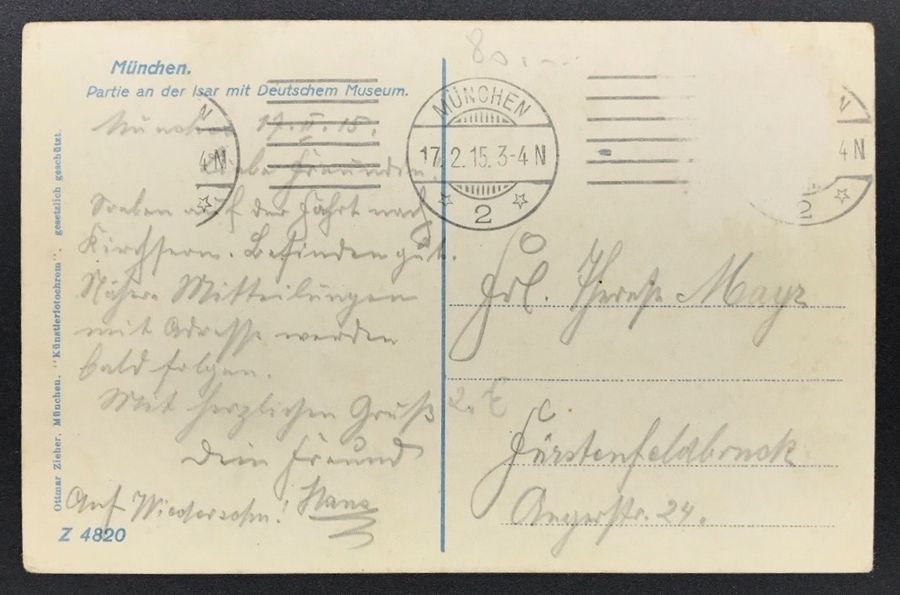 AK München - Partie an der Isar mit Deutschem Museum 17.2.1915