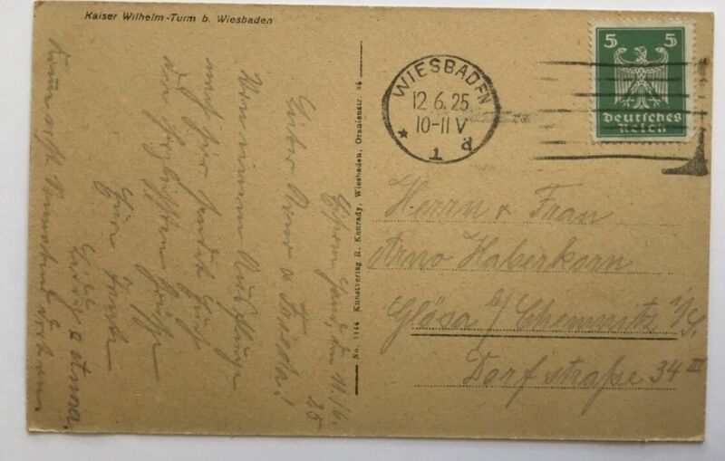 AK Wiesbaden Kaiser Wilhelm Turm 1925 gelaufen nach Glösa Chemnitz