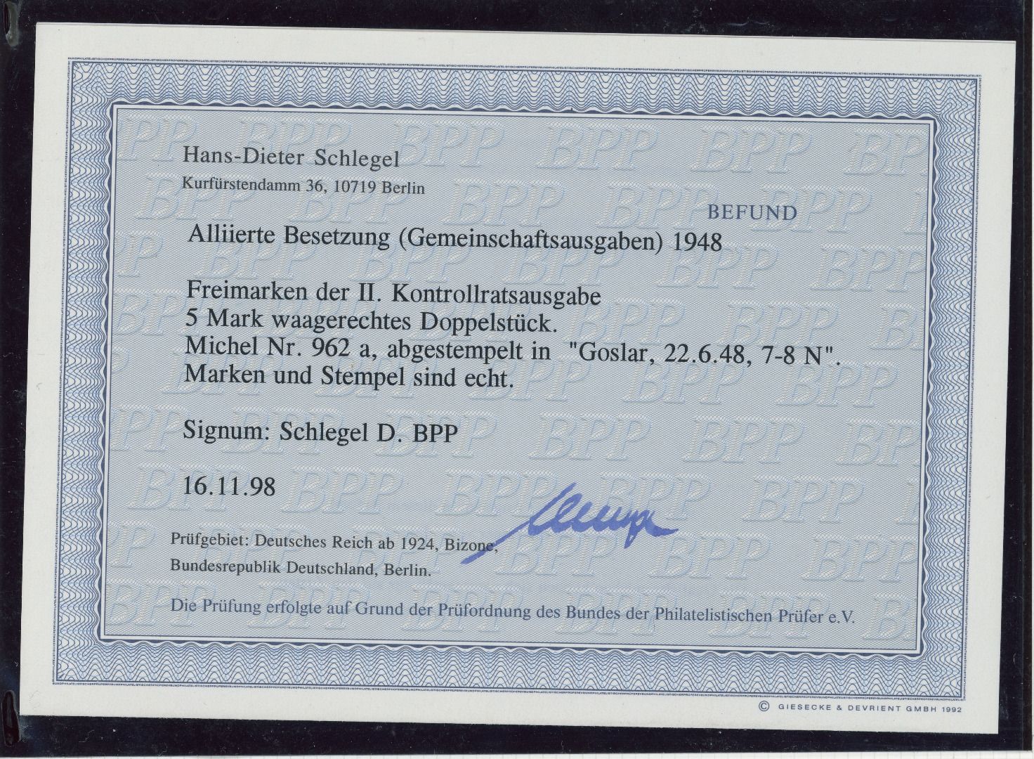 All. Besetzung Gemeinschaftsausgaben Michel Nummer 962a Paar gestempelt Goslar Befund