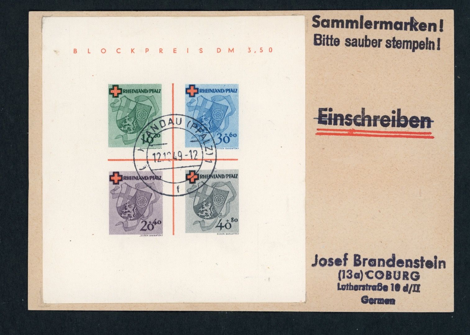 Alliierte Besetzung Franz. Zone Rheinland-Pfalz Block 1 gestempelt