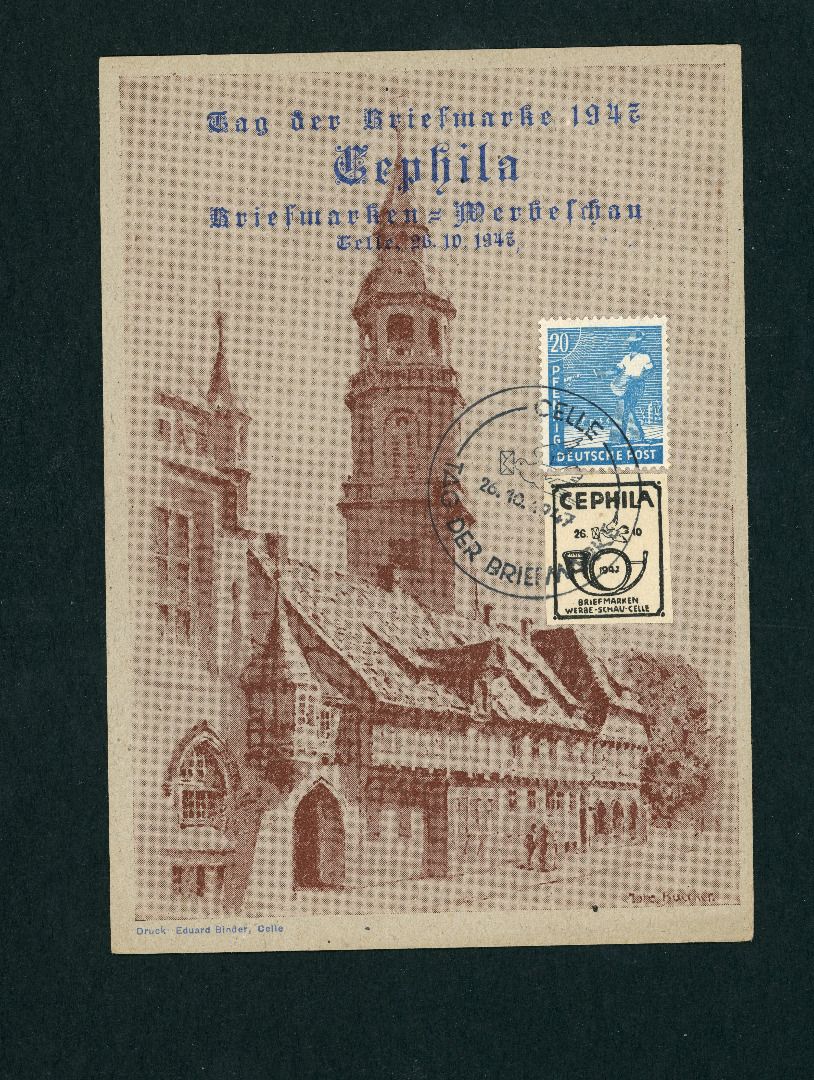 Alliierte Besetzung Sonderstempel Celle Tag der Briefmarke 1947 Briefmarken Werbeschau auf Sonderkarte