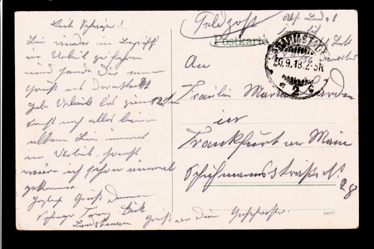 Ansichtskarte Darmstadt - Ludwigshöhe - 1918 nach Frankfurt am Main
