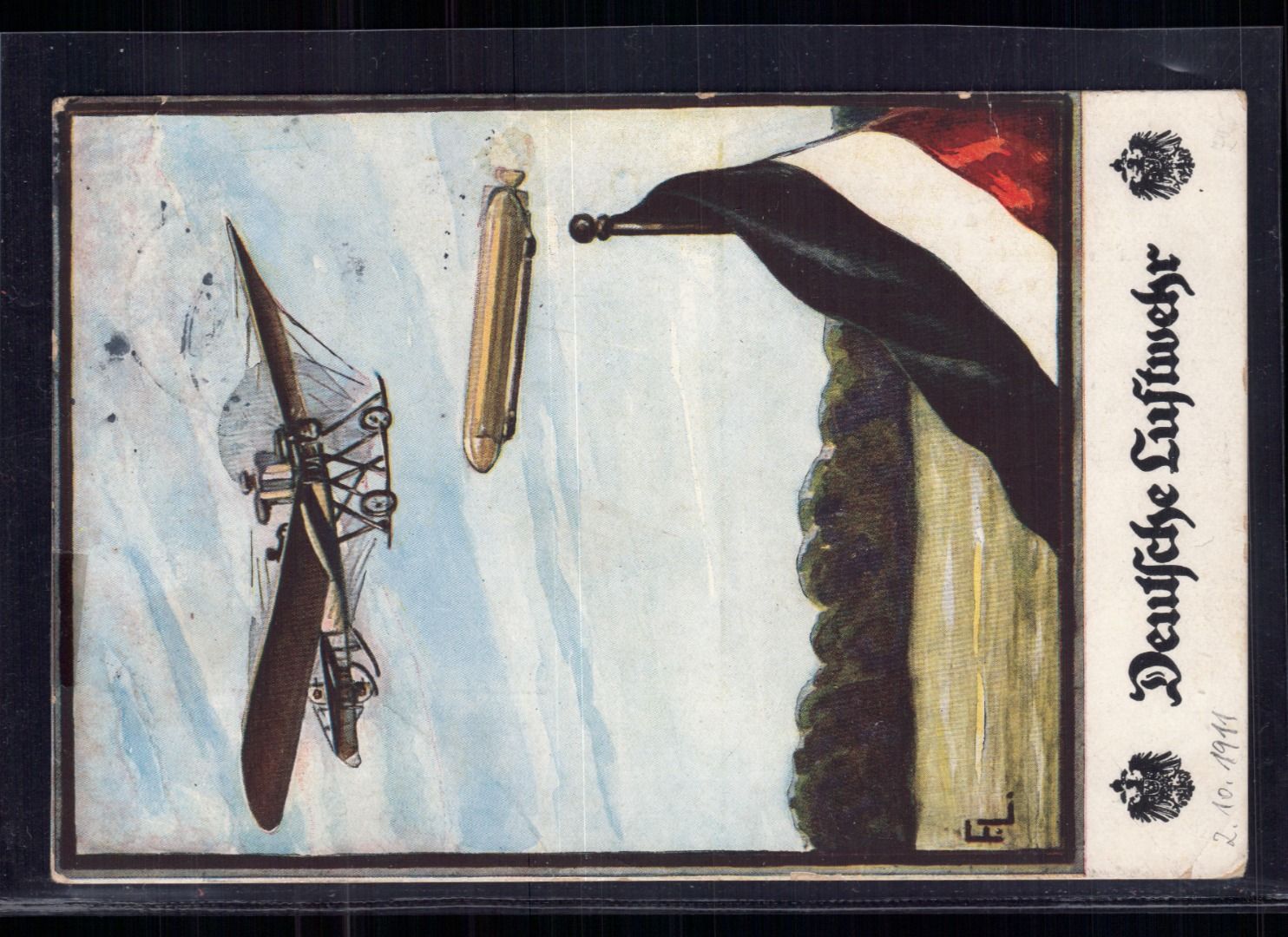 Ansichtskarte Deutsche Luftwehr - Aufnahme: Flugzeug + Zeppelin - Berlin 1912 nach Kleeberg / Arnswalde