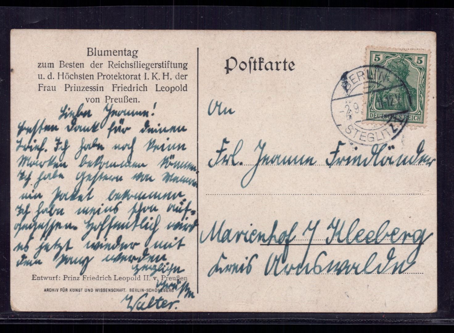 "Blumentag - zum Besten der Reichsfliegerstiftung u. d. Höchsten Protektorat I. K. H. der Frau Prinzessin Friedrich Leopold von Preußen "