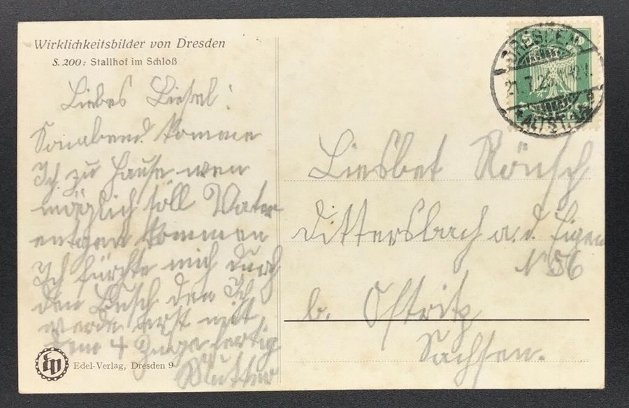 Ansichtskarte Dresden Stallhof im Schloss gelaufen 21.7.1925