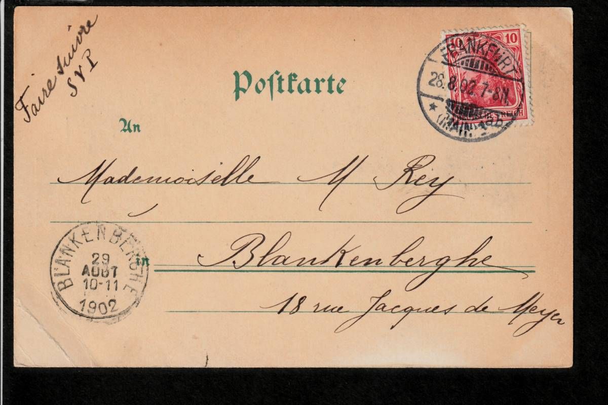 Ansichtskarte Frankfurt am Main - Hauptbahnhof - Blankenberghe / Frankreich 1902