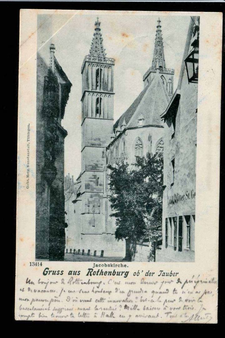 Ansichtskarte Gruss aus Rothenburg / Tauber - Jacobskirche - 1899 nach Paris