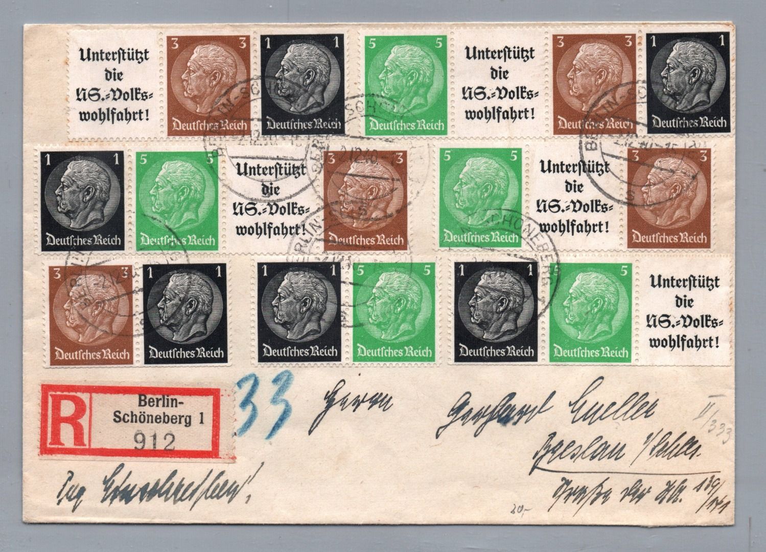 Brief Dt. Reich Einschreiben - Berlin nach Breslau 1940