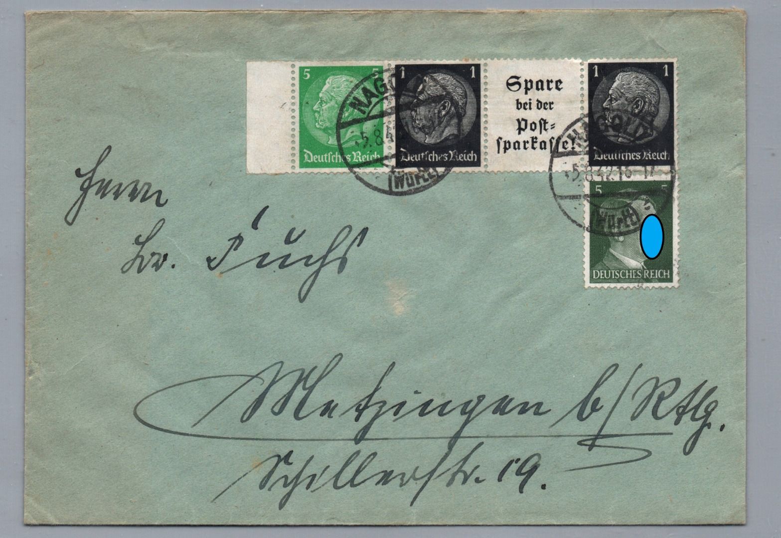 Brief Dt. Reich MH Zusammendruck - Nagold nach Metzingen 1942