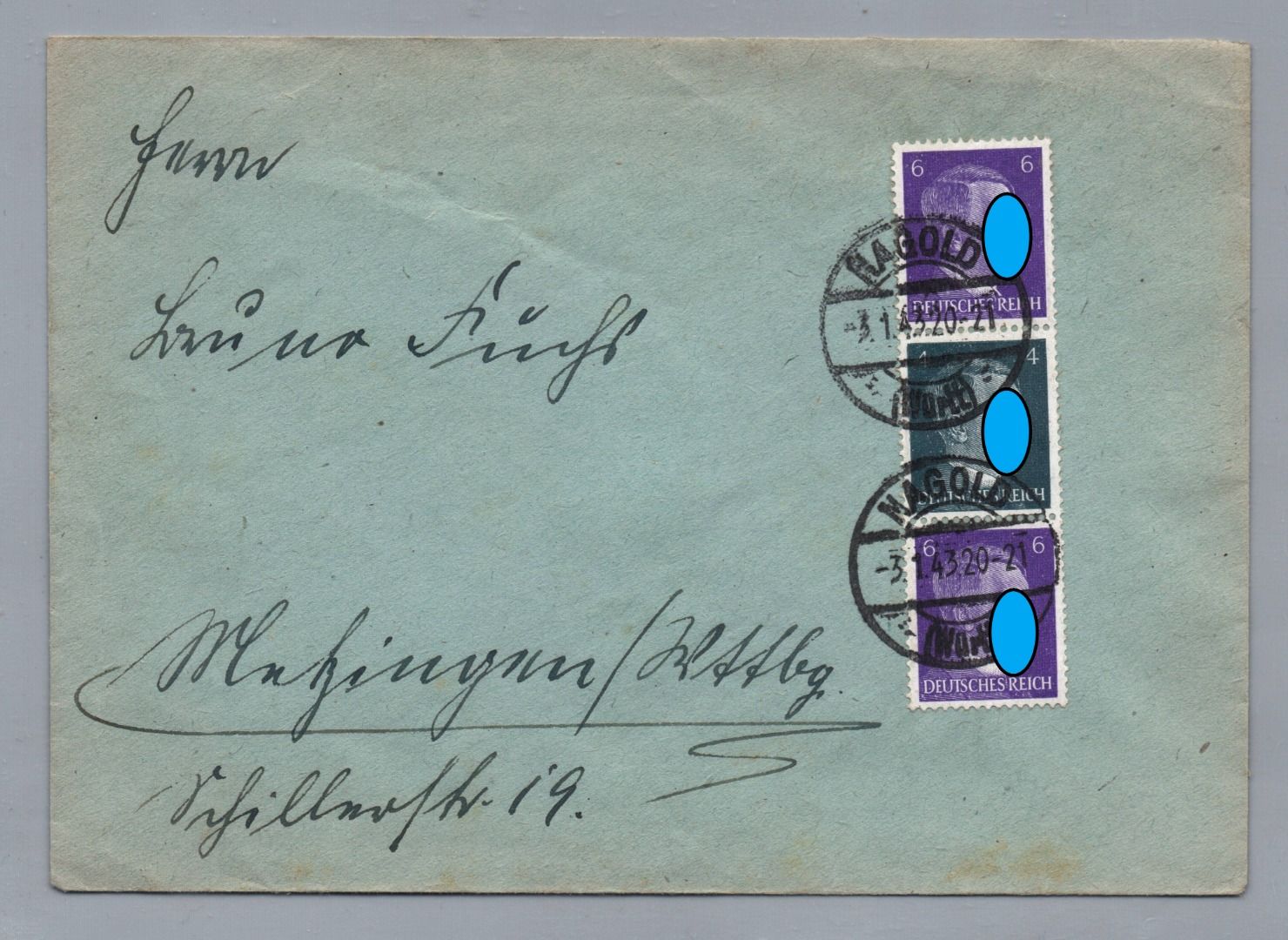 Brief Dt. Reich MiNr S 293 - Nagold nach Metzingen 1943
