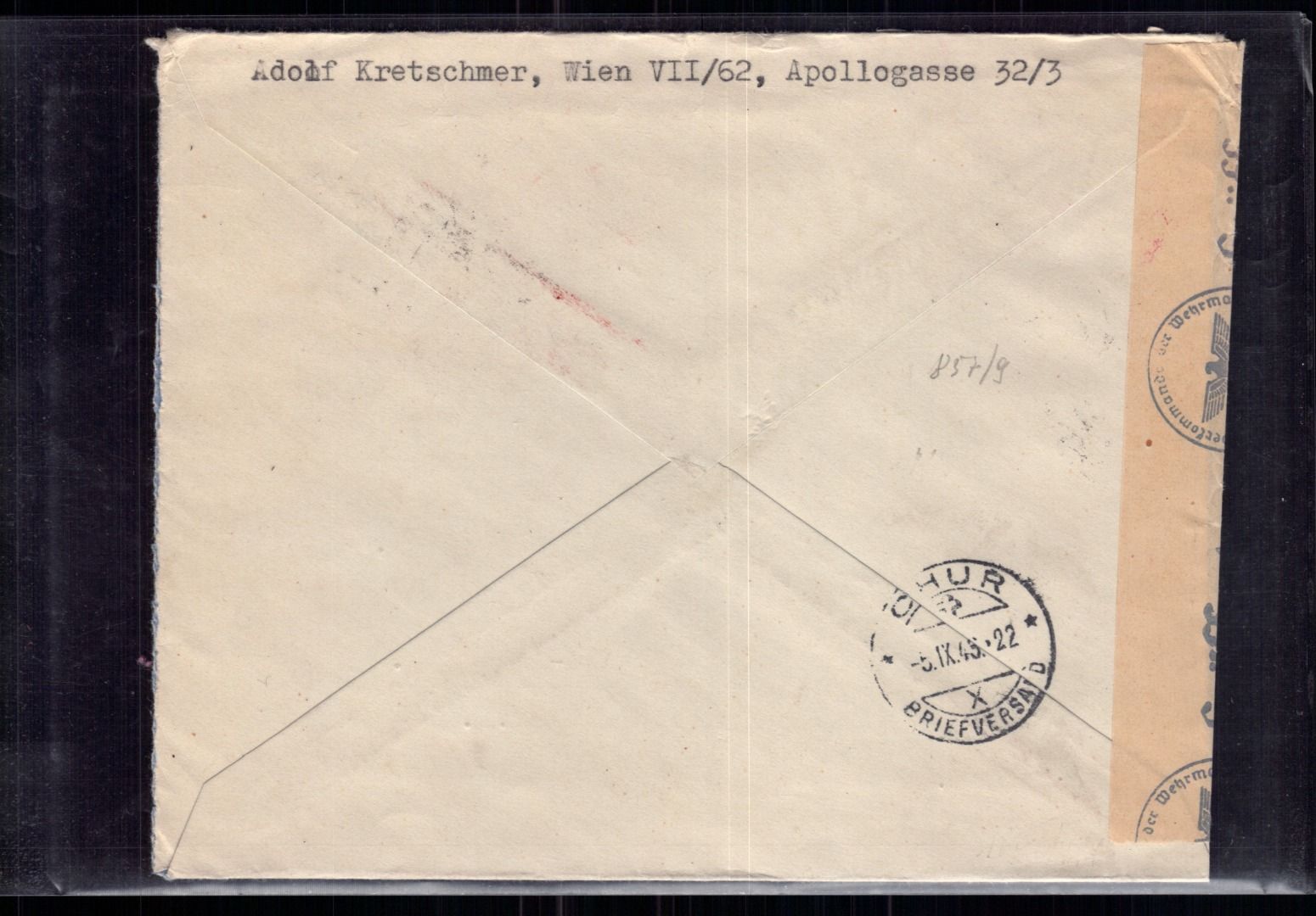 Brief : Österreich Zensur Einschreiben - Wien n. Chur / Schweiz 1943