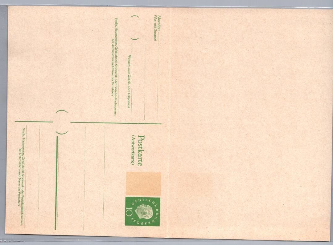 Bund Heuss Ganzsache Postkarte P45 I mit Antwortkarte ungebraucht