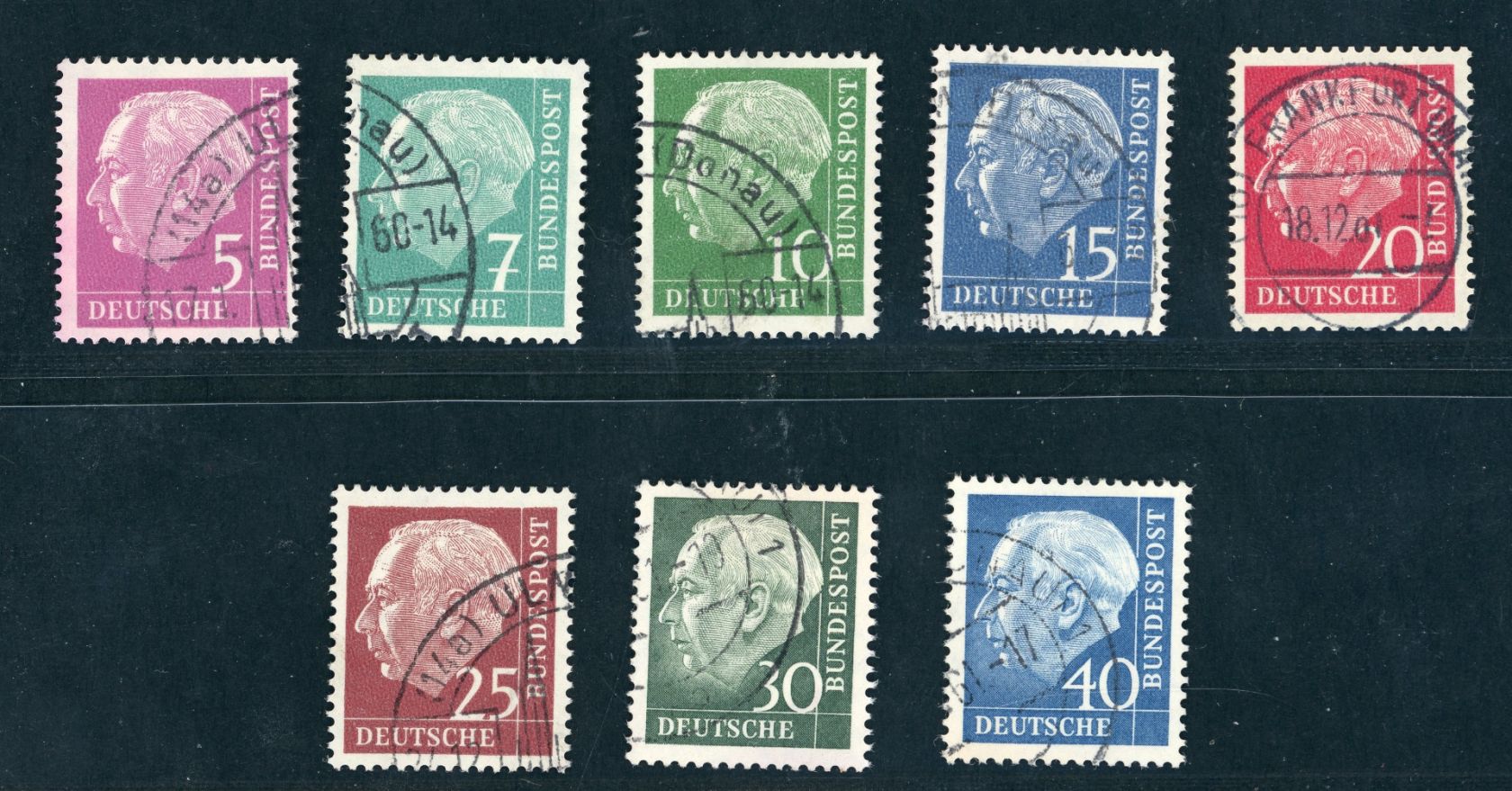 Bund Michel Nummer 179 y / 260 y Heuss Lumogen gestempelt