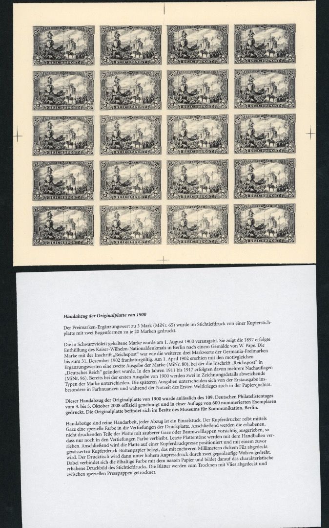 Deutsches Reich Michel Nummer 65N Nachdruck 2008 , Handabzug der Originalplatte