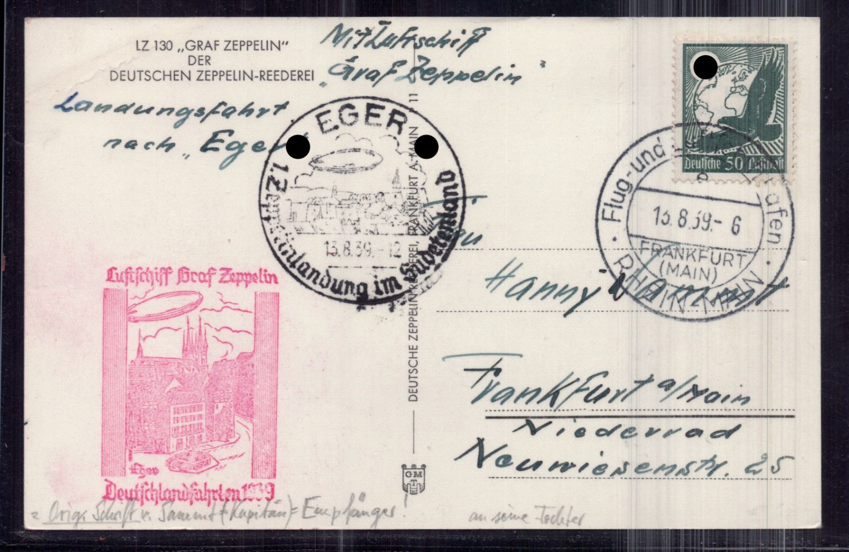 DR Zeppelin Beleg Deutschlandfahrten 1939 - Eger Zeppelinlandung im Sudetenland
