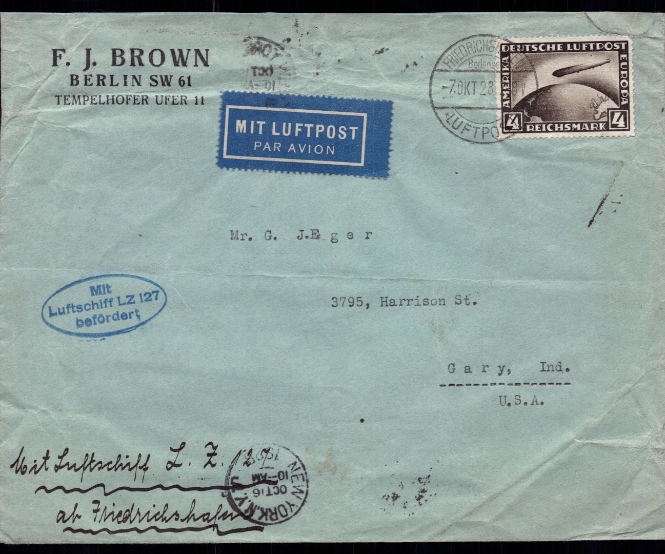DR Zeppelin Zeppelin Beleg , EF Mi.Nr. 424 LZ 127 Friedrichshafen New York 1928