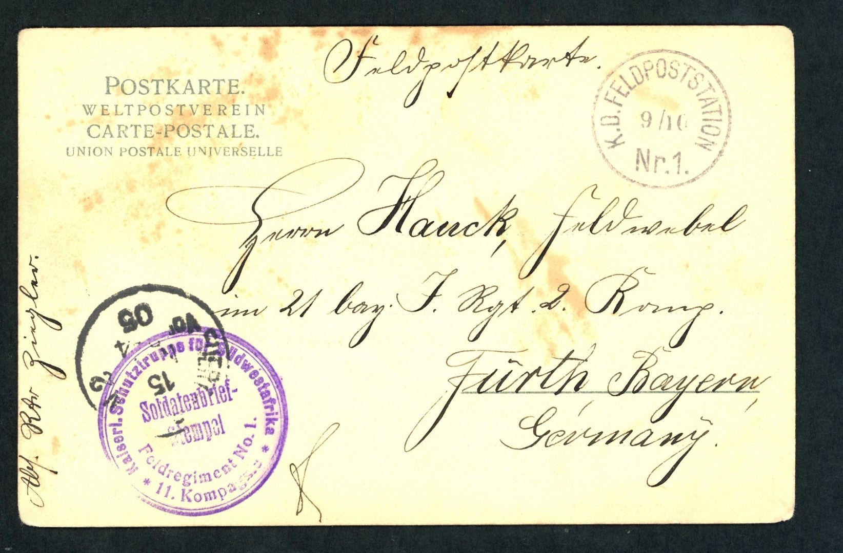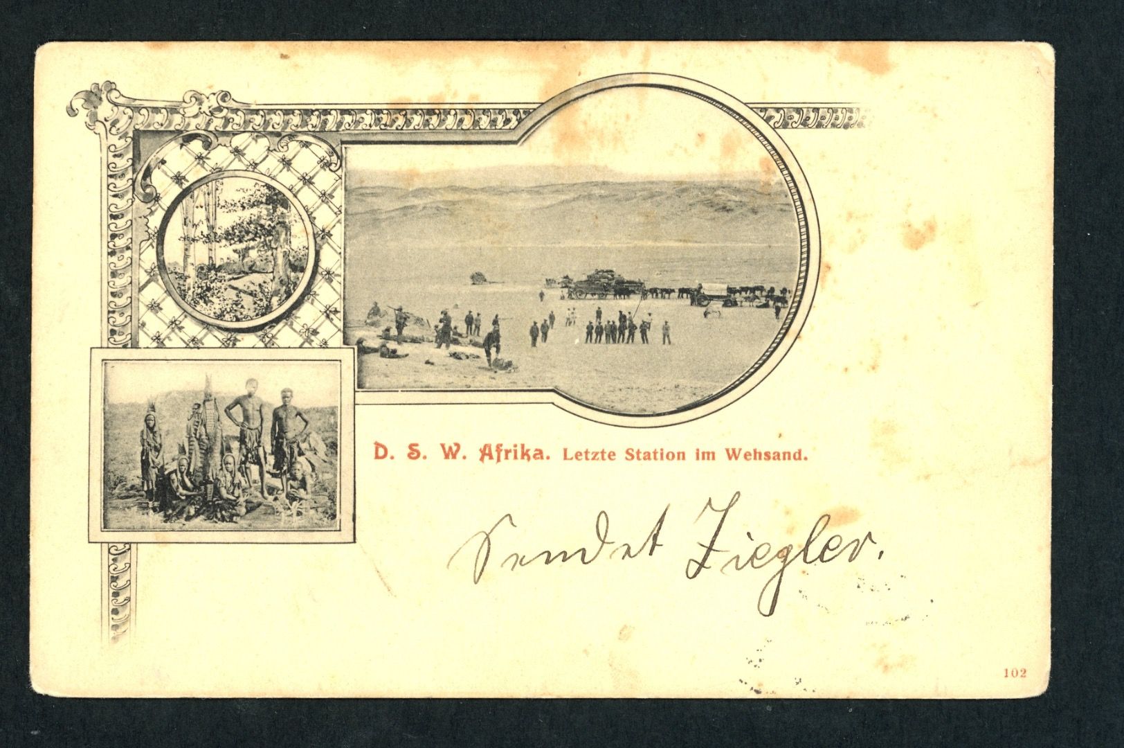 Dt. Kolonien Südwestafrika Ansichtskarte l. Station im Wehsand Feldpost n. Fürth