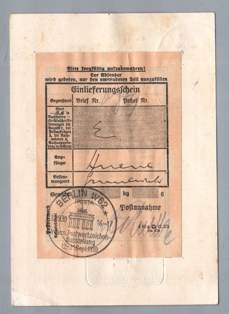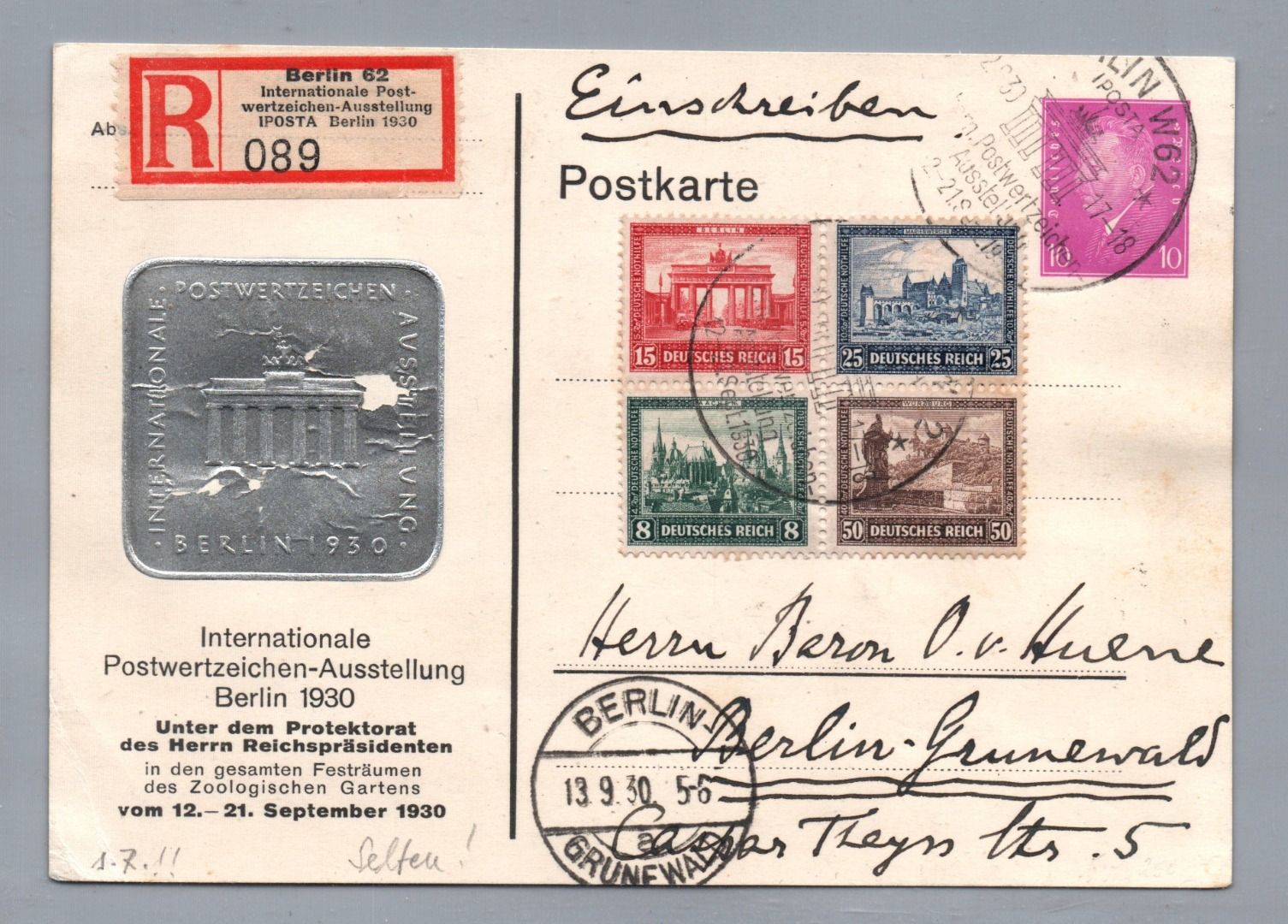 Dt. Reich Beleg Herzstück aus dem IPOSTA Block. Michel Nummer 446 - 449 Einschreiben Berlin IPOSTA 1930