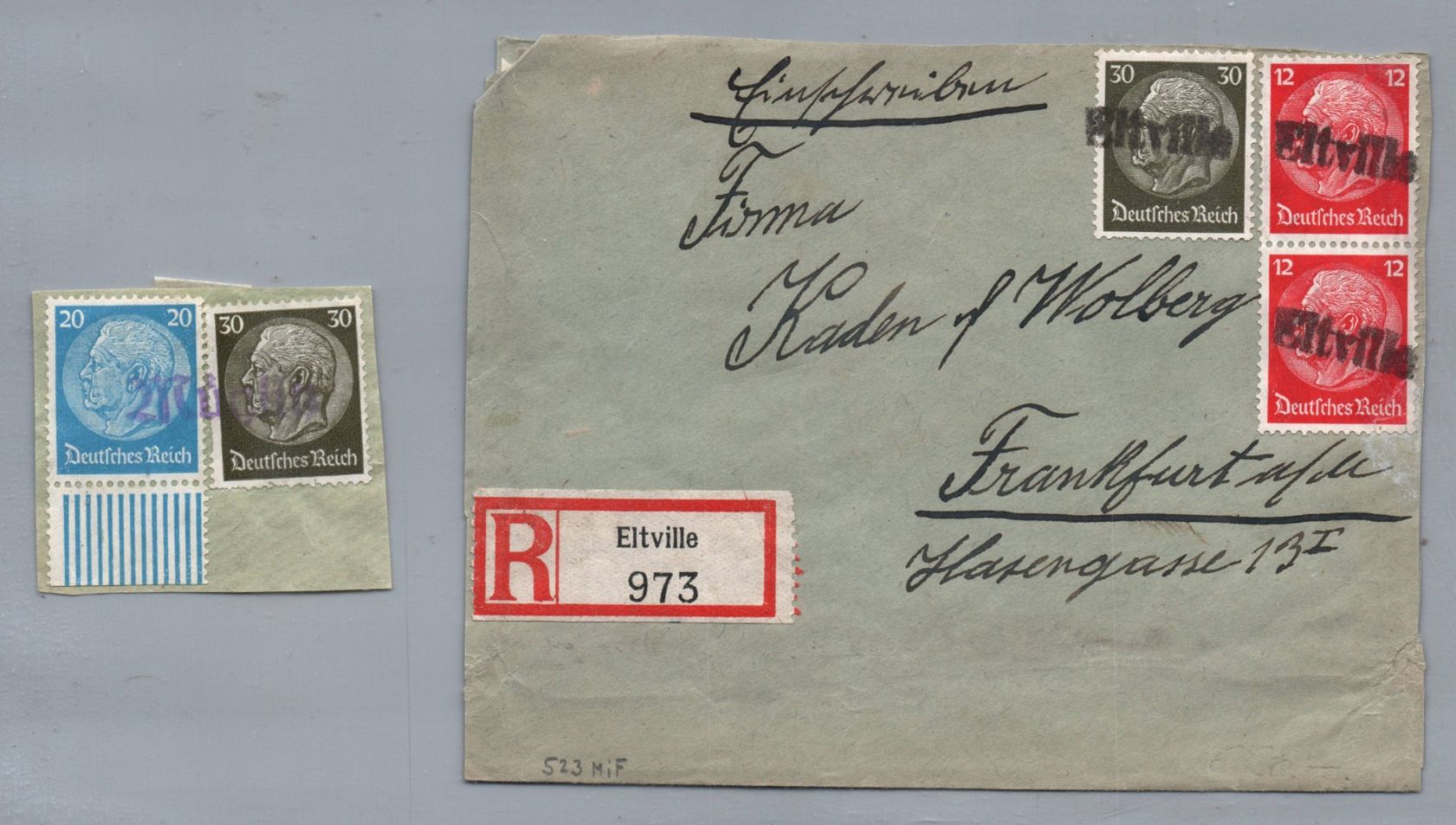 Dt. Reich Einschreiben Brief - Hindenburg - Eltville nach Frankfurt a M 1940