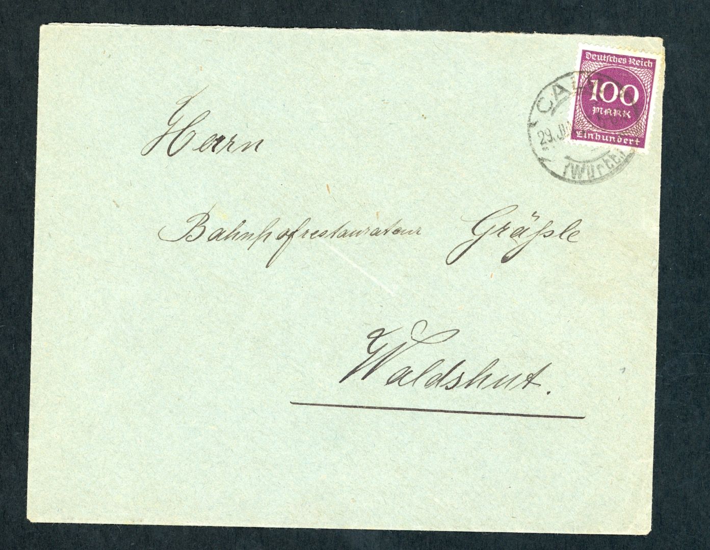 Dt. Reich Infla Einzelfrankatur Calw nach. Waldshut