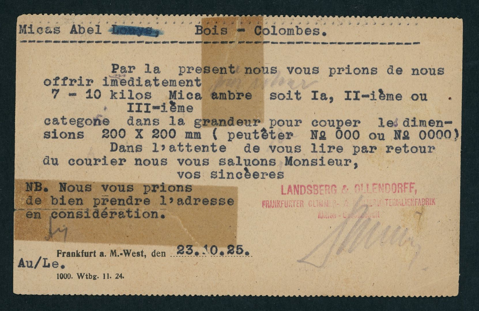 Dt. Reich Luftpostkarte Firmenkarte Frankfurt nach Bois Colomes 1925