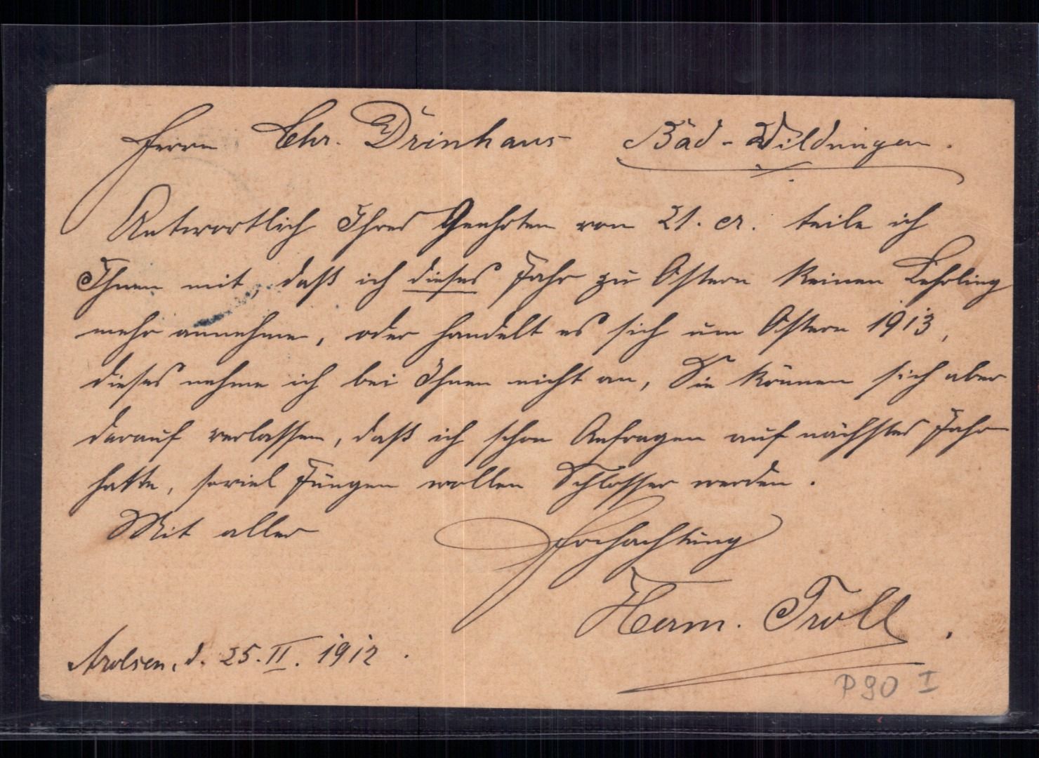 Dt. Reich MiNr P 90 I Ganzsache Arolsen n. Bad Wildungen 1912