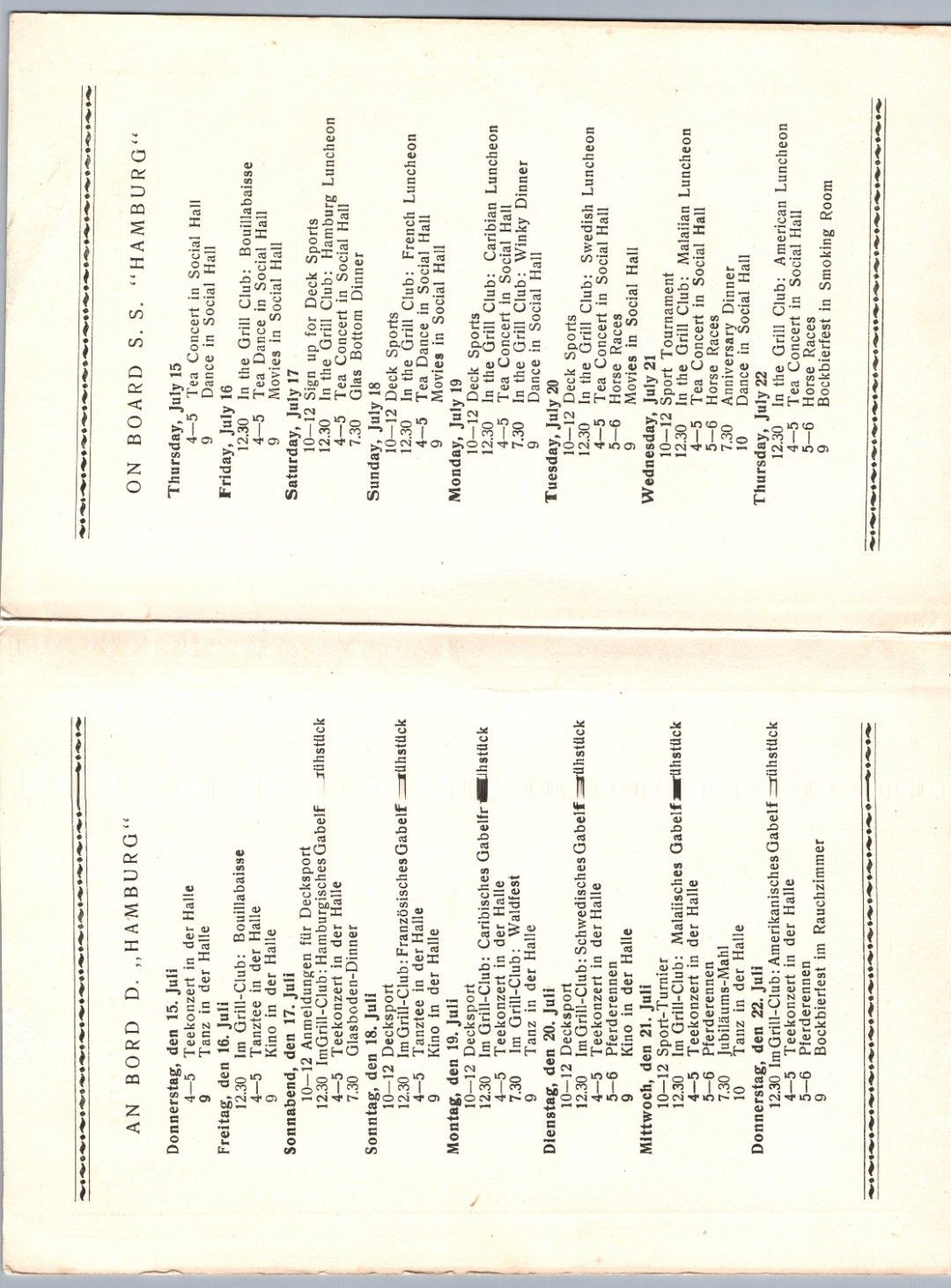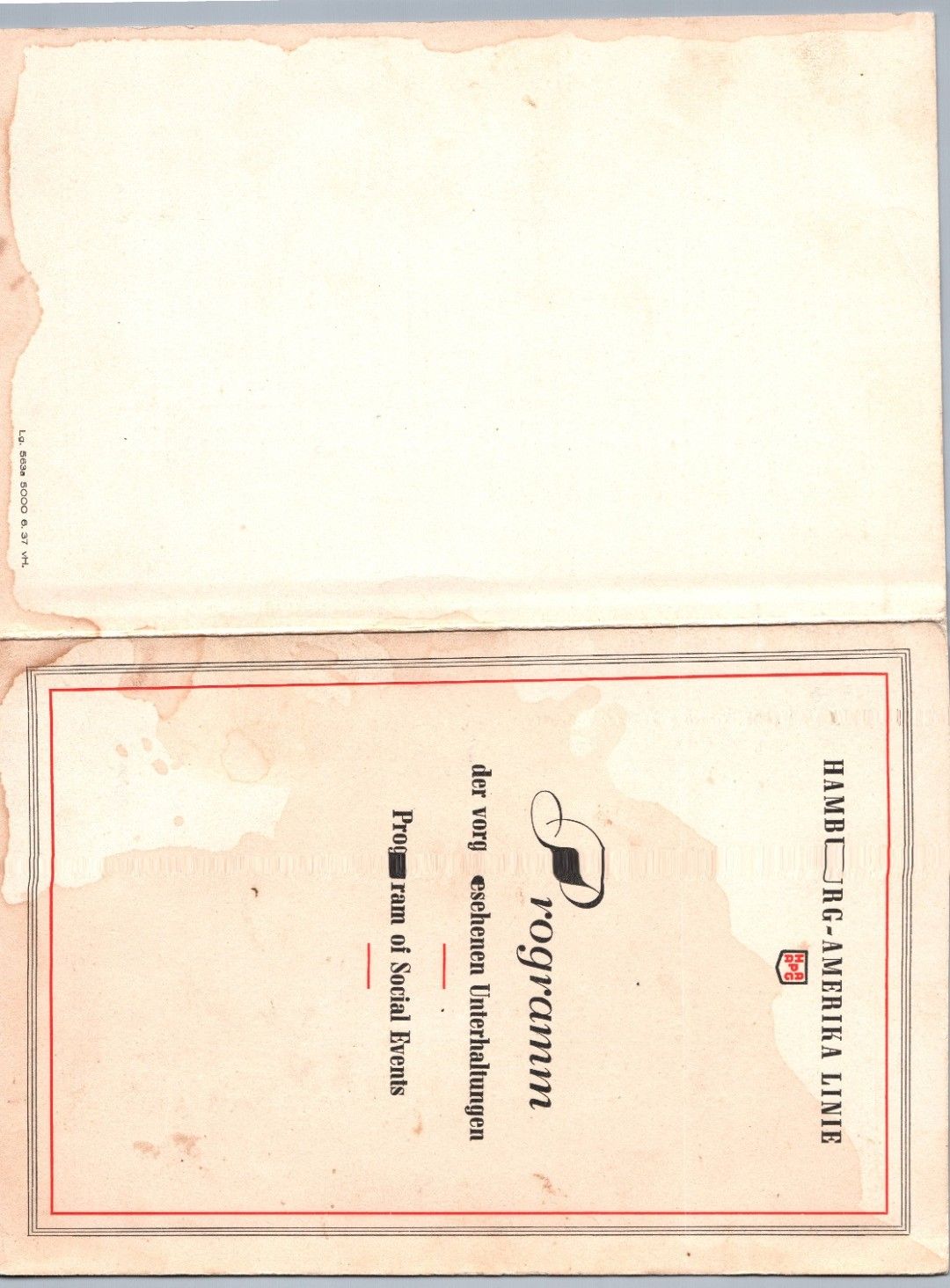 Dt. Reich Schiffs Programm Heft Hamburg-Amerika Linie - siehe Bilder!