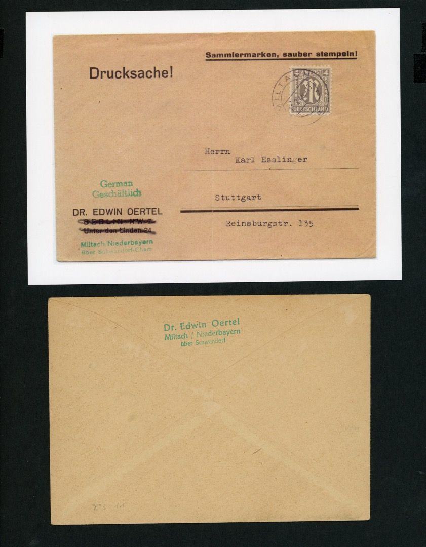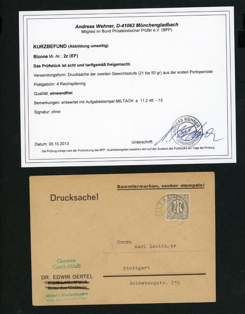 Alliierte Besetzung BiZone AM-Post EF Michel Nr. 2z Miltach - Befund