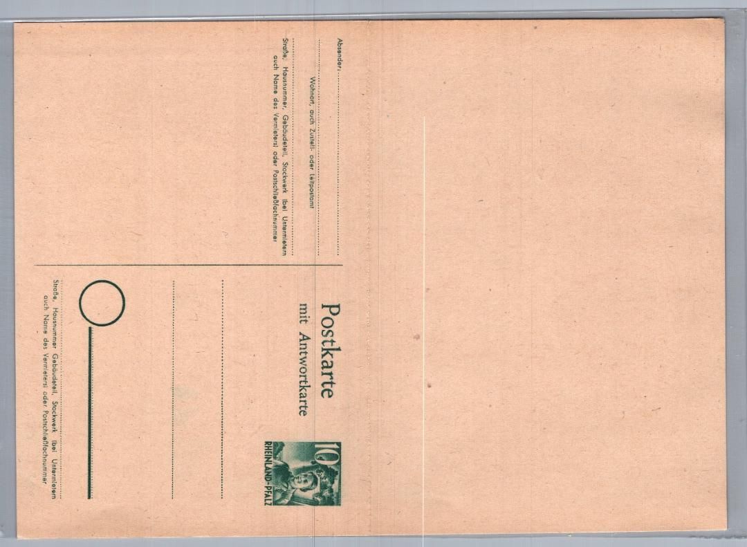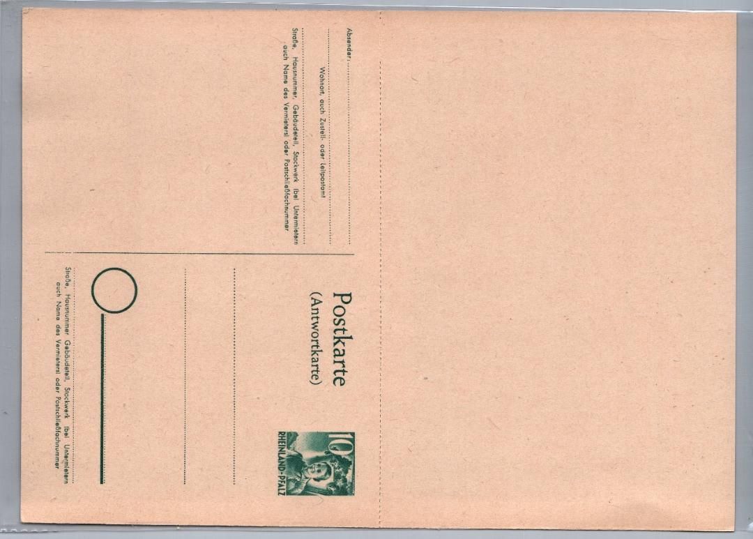 Alliierte Besetzung Franz. Zone Rheinland Pfalz - Ganzsache P 5