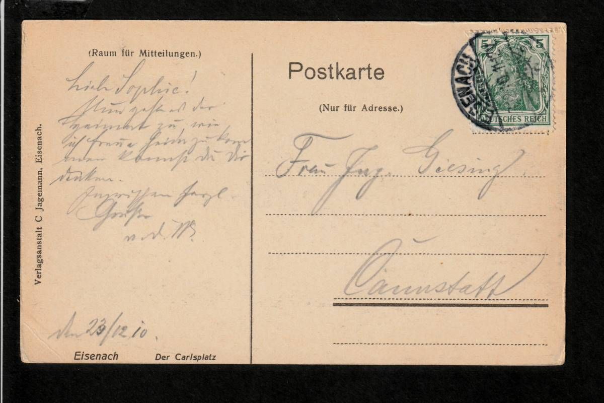 Ansichtskarte Eisenach - 1910 nach Cannstatt / Stuttgart