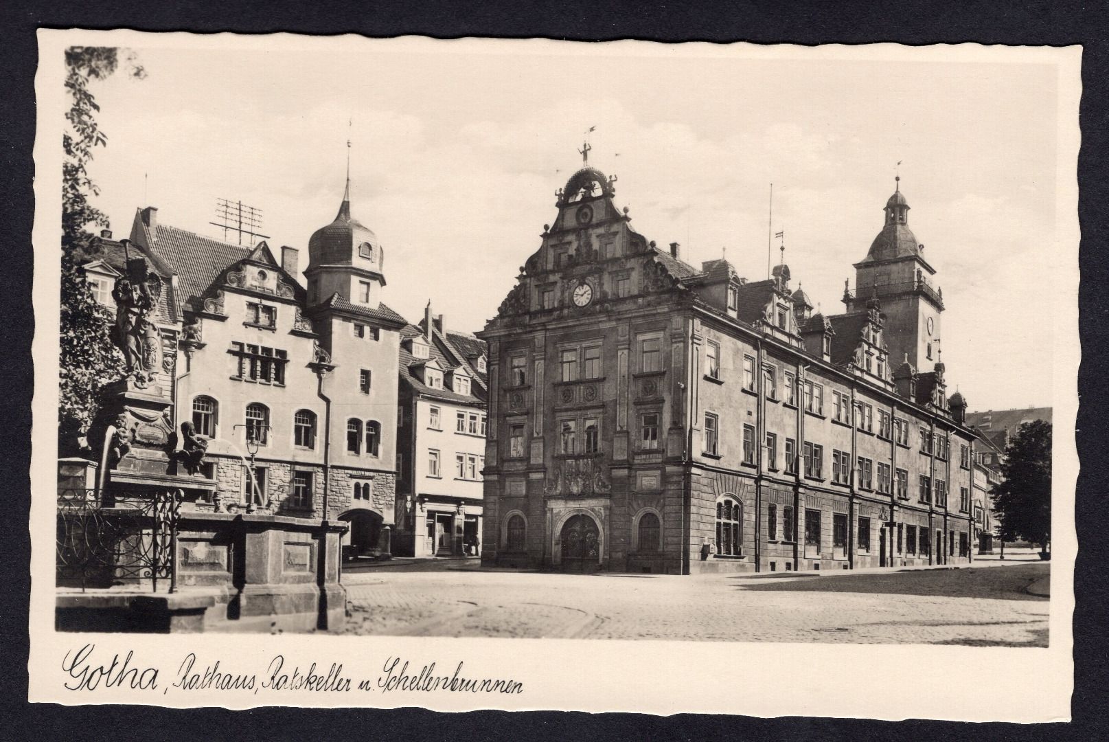 Ansichtskarte Gotha , Rathaus , Ratskeller u. Schellenbrunnen ungebraucht