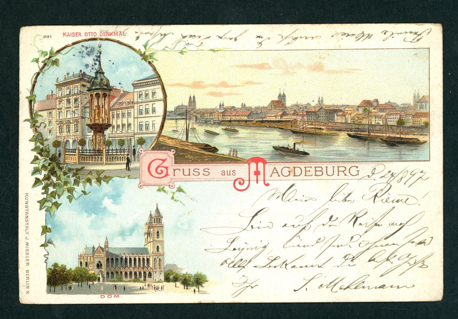 Ansichtskarte Gruss aus Magdeburg Dom , Kaiser Otto Denkmal 1897 n. Düren