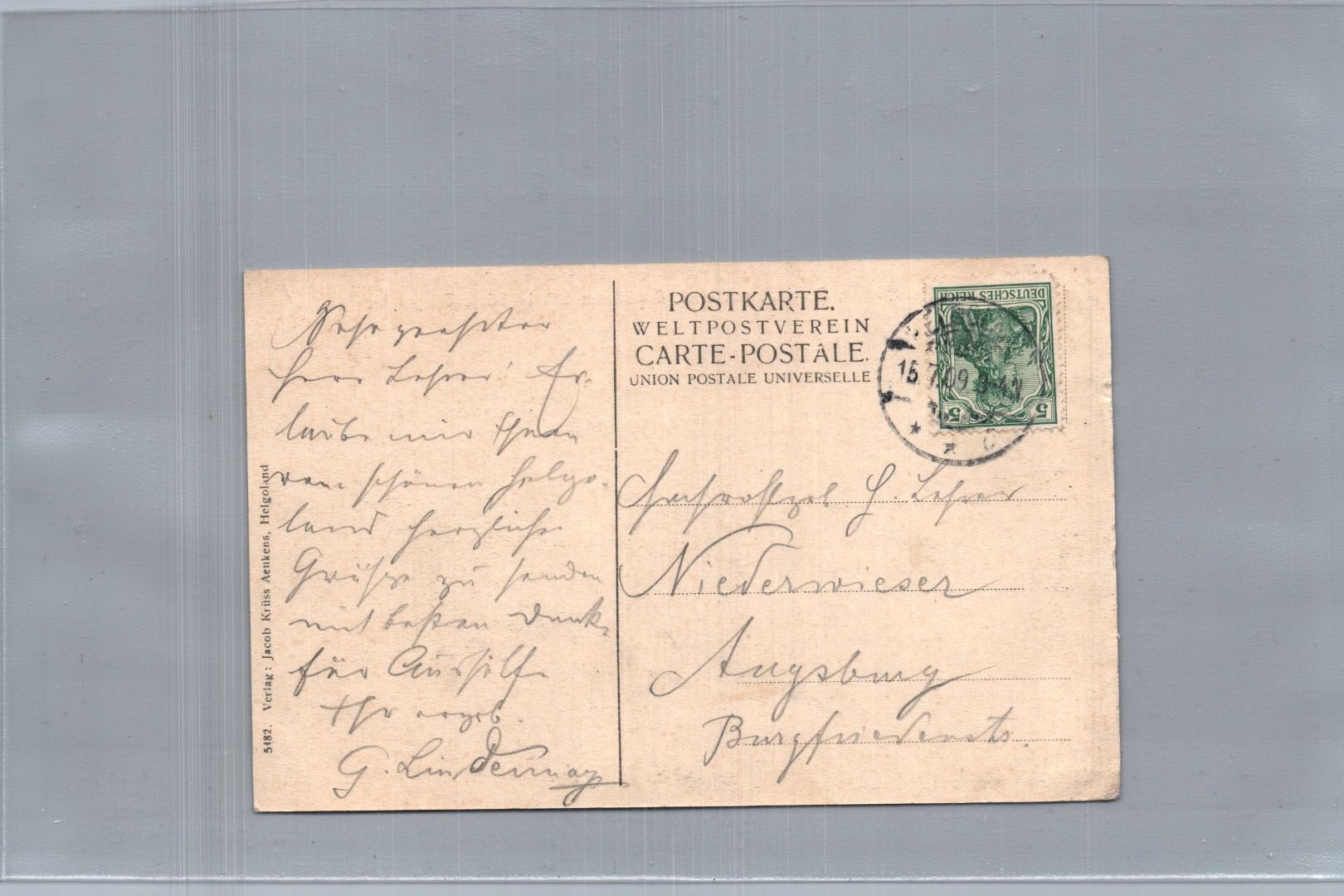 Ansichtskarte Helgoland - Südwestküste Oberland mit Leuchtturm 1909 nach Augsburg