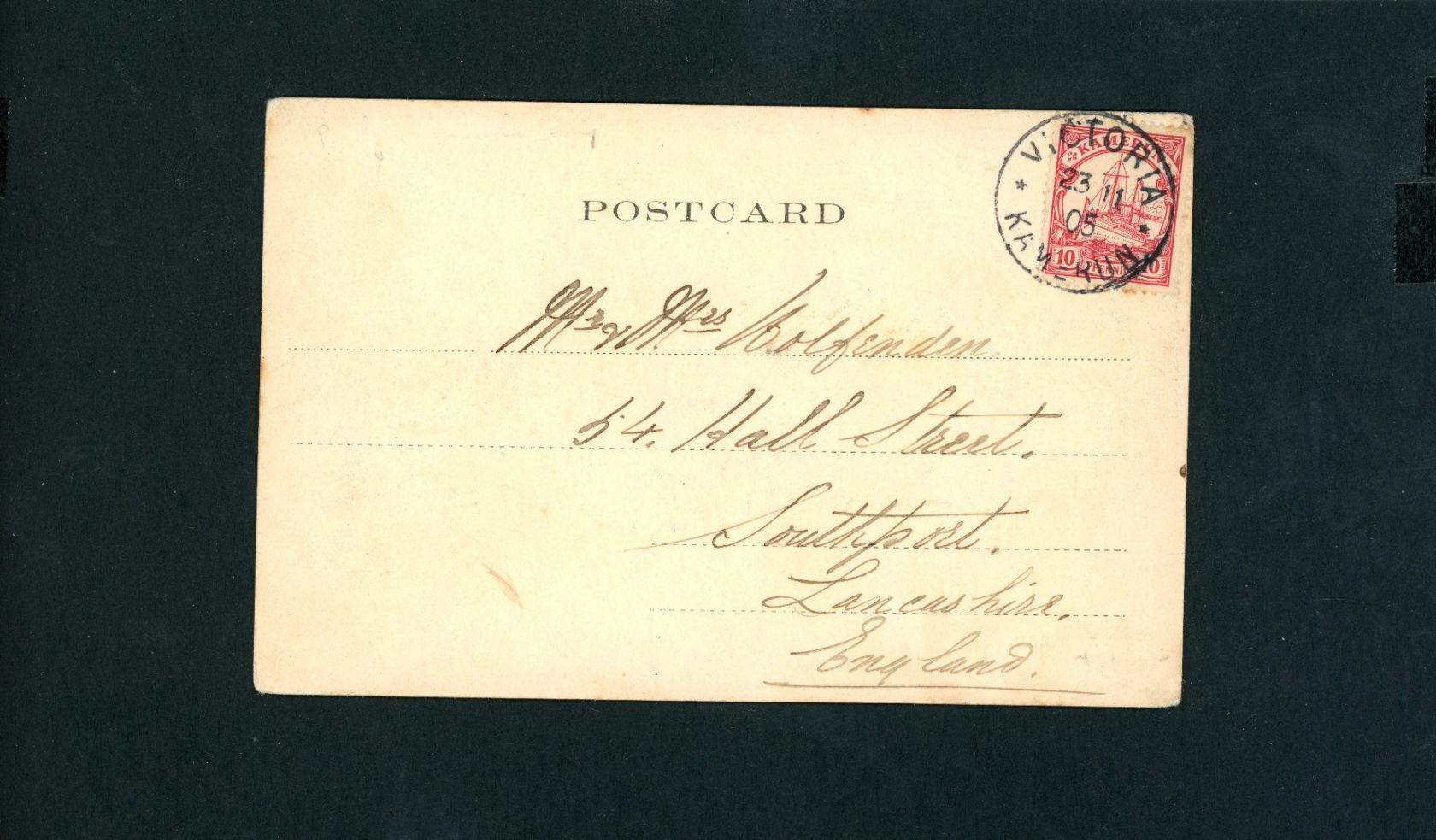 Ansichtskarte Kamerun Kotonou , gelaufen Victoria 1905 nach Lancashire England