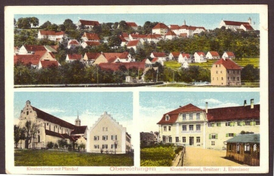 Ansichtskarte Oberelchingen - Klosterbrauerei - Kirche mit Pfarrhof