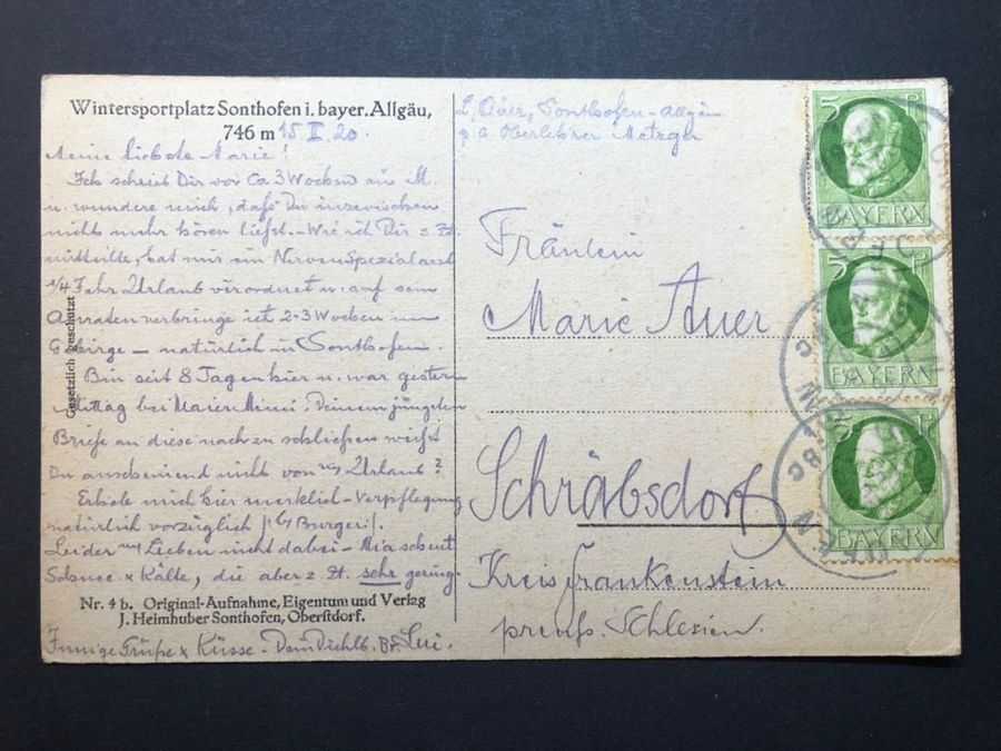 Ansichtskarte Sonthofen Wintersportplatz MeFr Mi.Nr. 112 Bayern 15.2.1920