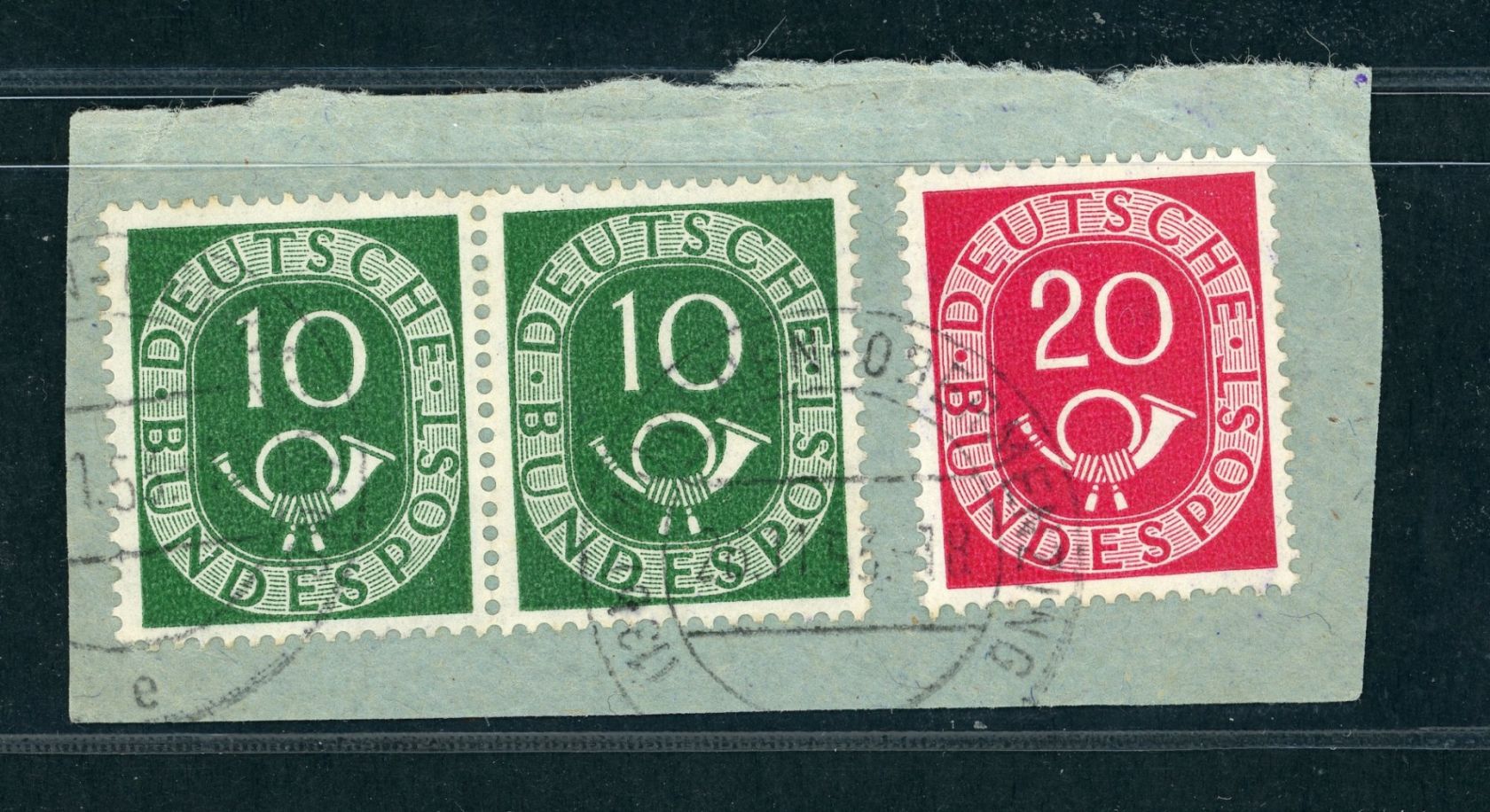 Bund Posthorn Michel Nr. 128 gestempelt waagerechtes Paar Briefstück