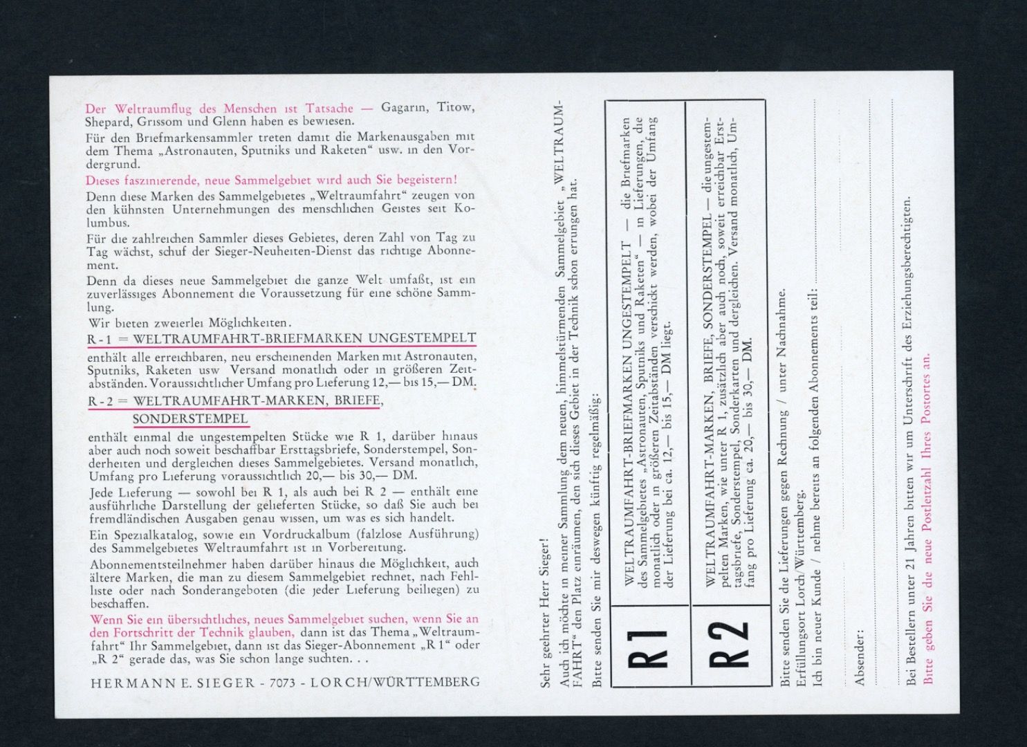 Bund Privatganzsache "Sieger" Weltraum , Rakete ungebraucht