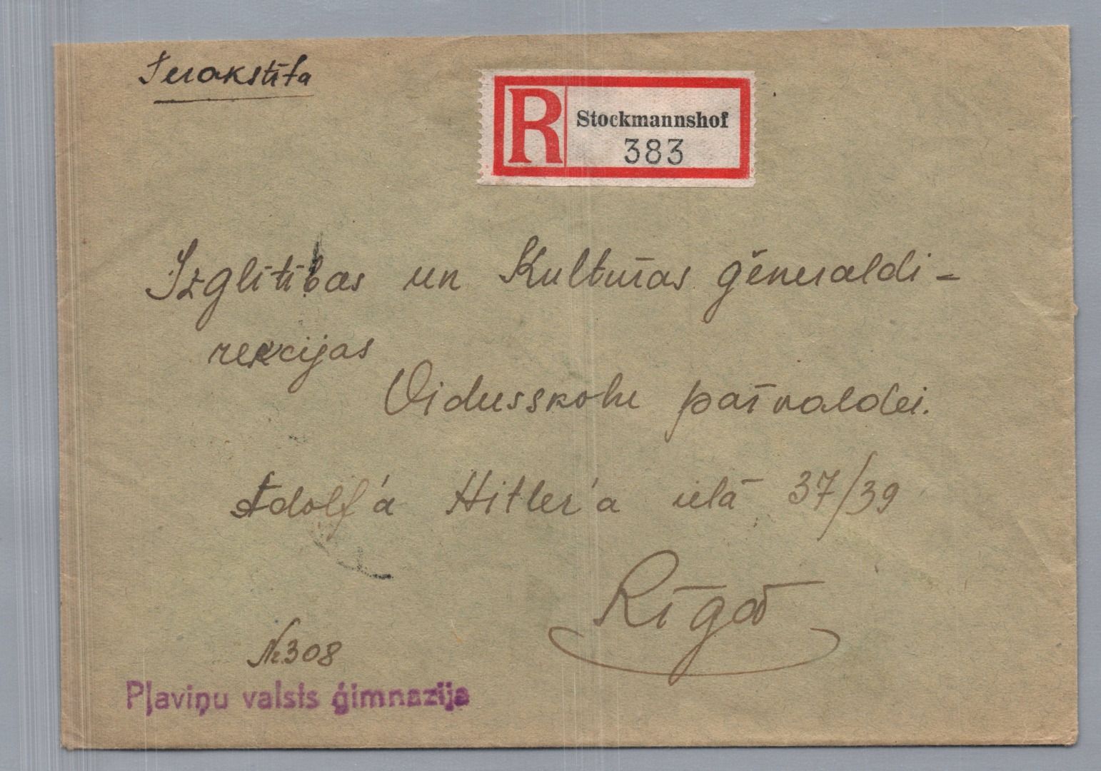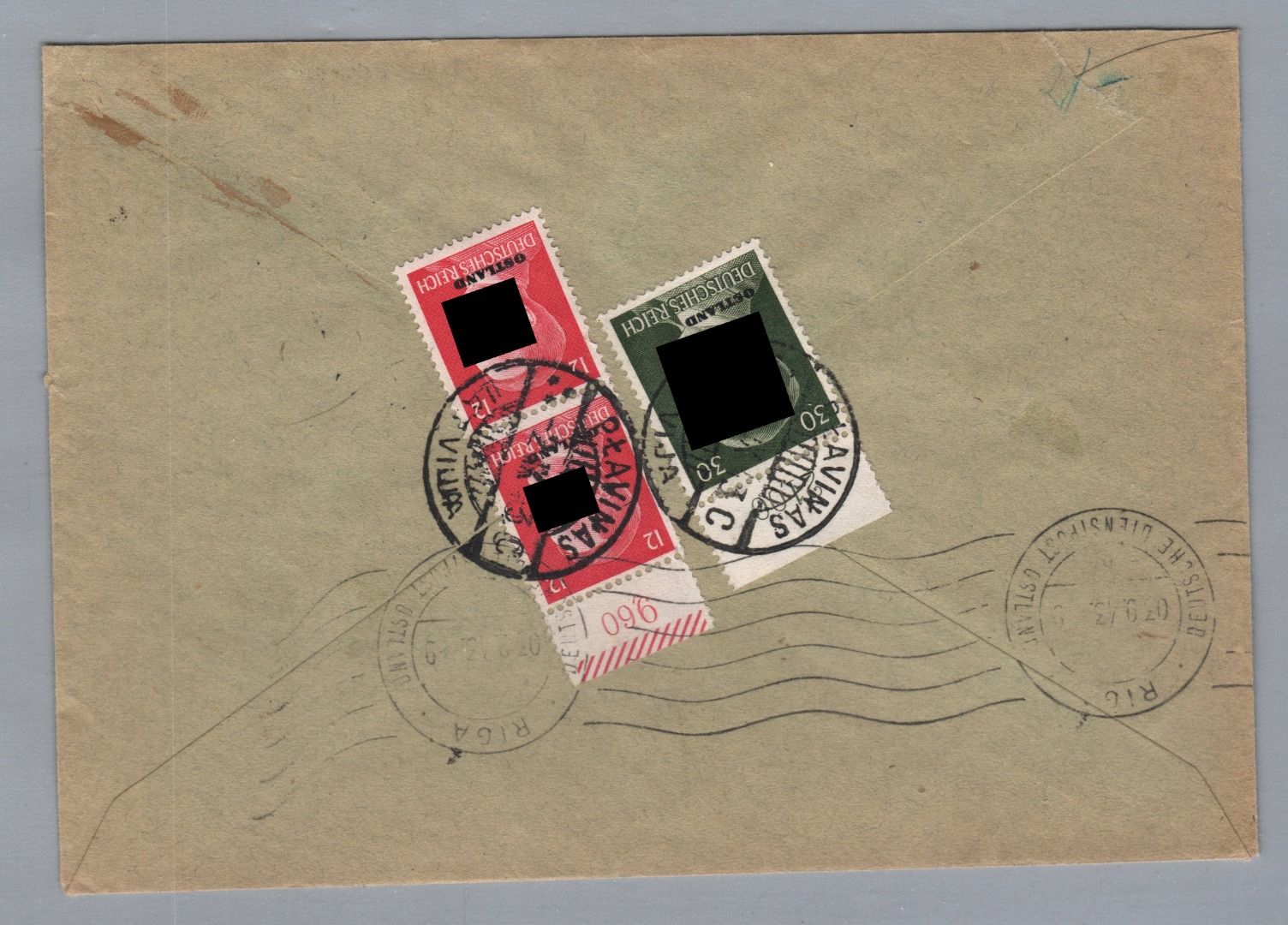 Deutsches Reich Osten Einschreiben Stockmannshof Plavinas nach Riga 1943