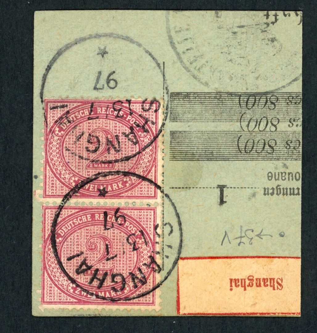Dt. Auslandspostämter China Briefstück V37e, 1x mit PLF V gestempelt Shanghai 1897, geprüft