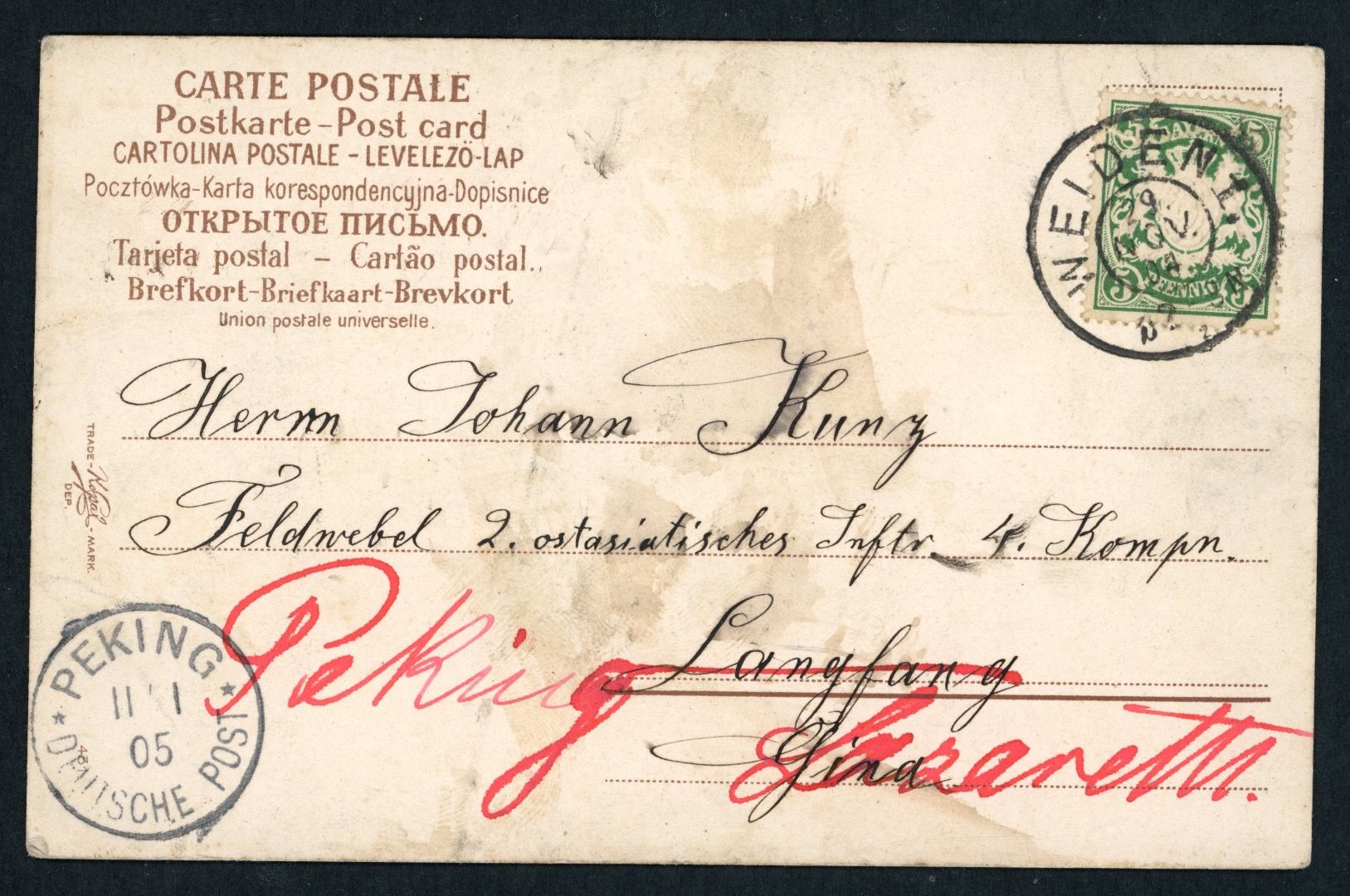 Dt. Auslandspostämter China -Neujahrs Karte von Wieden Bayern nach Peking - 1905