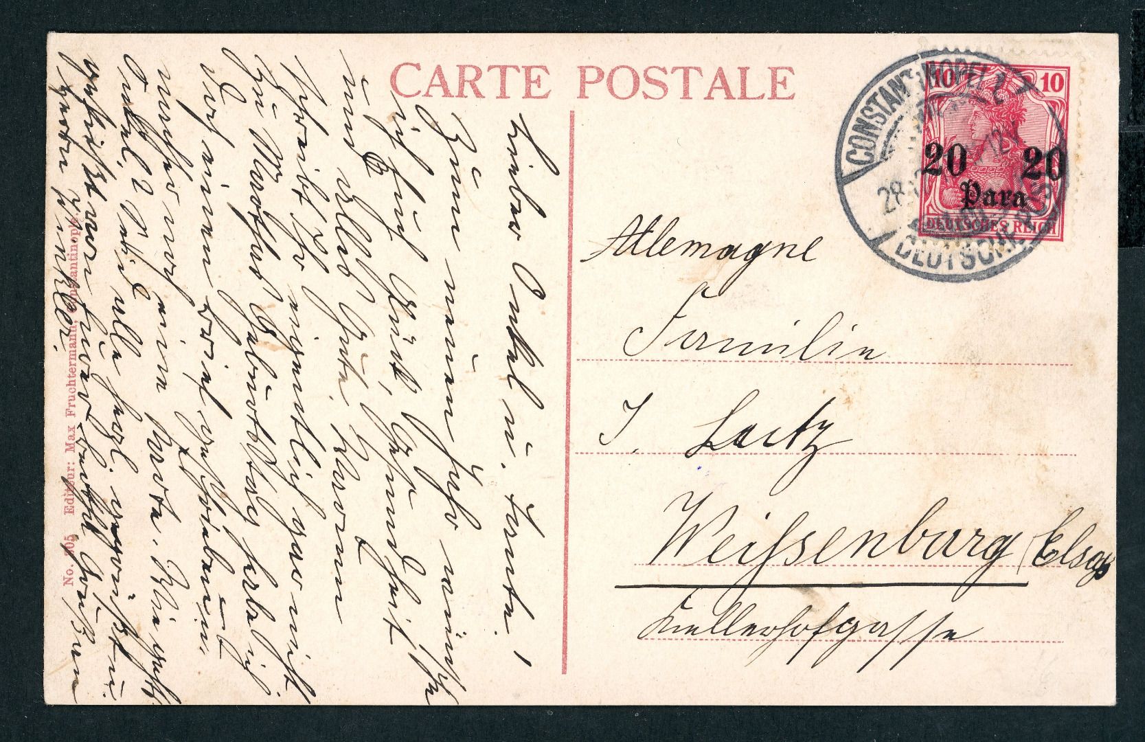 Dt. Auslandspostämter Türkei Ansichtskarte Konstantinopel nach Weißenburg Elsass