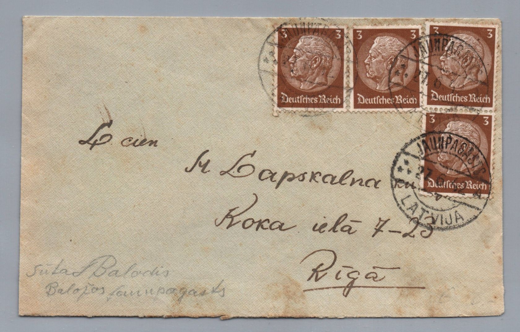 Dt. Reich Brief Ostland Jaunpagasts Latvija nach Riga 1942