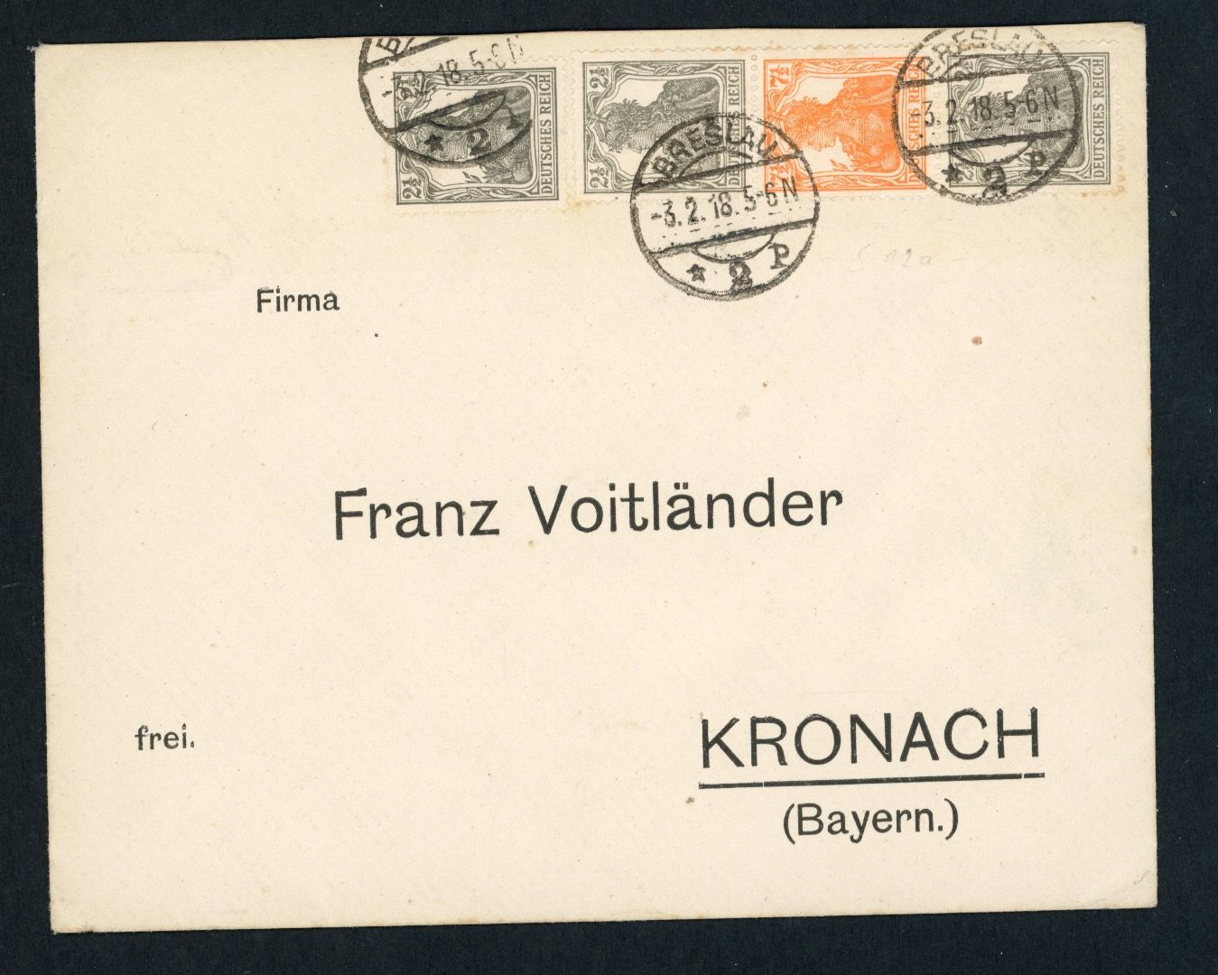 Dt. Reich Zusammendruck S12 Mischfrankatur Breslau nach Kronach