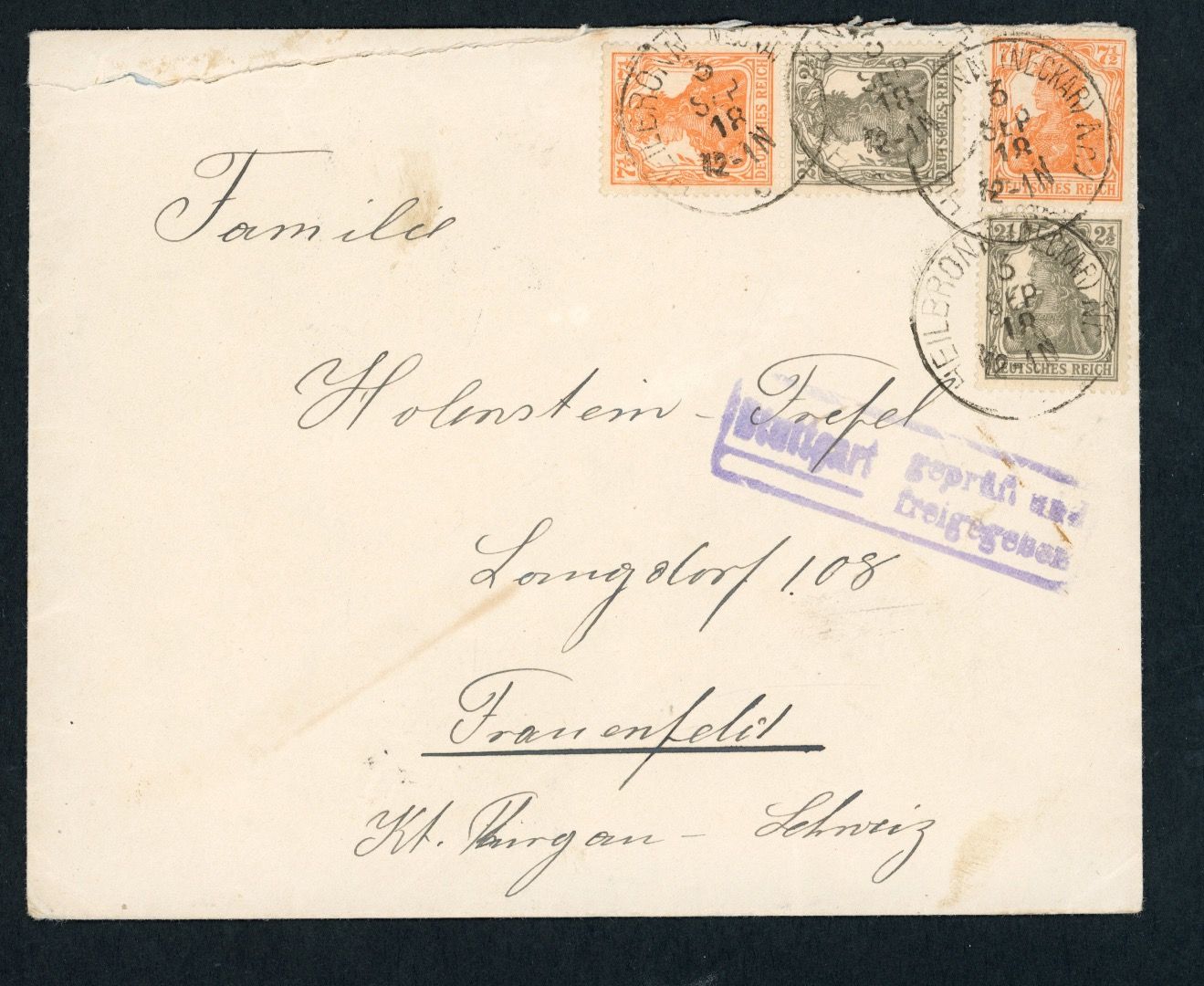 Dt. Reich Zusammendruck S13 Mehrfachfrankatur Heilbronn - Frauenfeld Schweiz