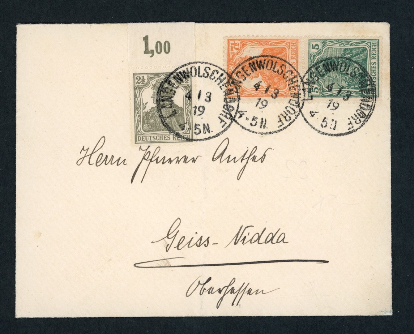 Dt. Reich Zusammendruck S3 Mischfranktur Langenwolschendorf nach GEiss Nidda