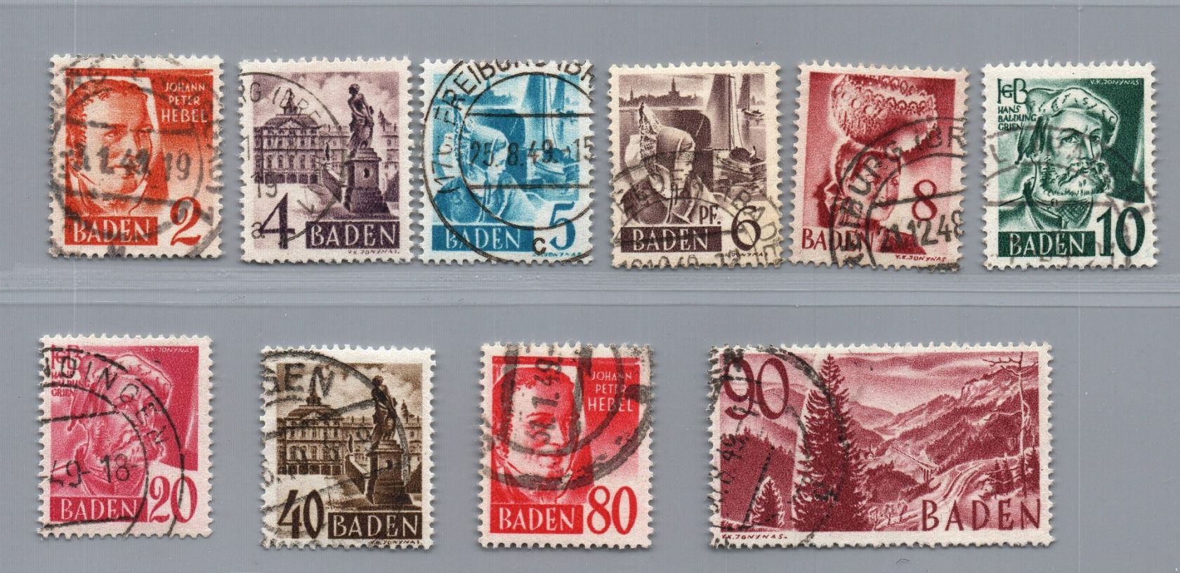 Franz. Zone Baden Michel Nr. 28 - 37 gestempelt 35 + 37 geprüft