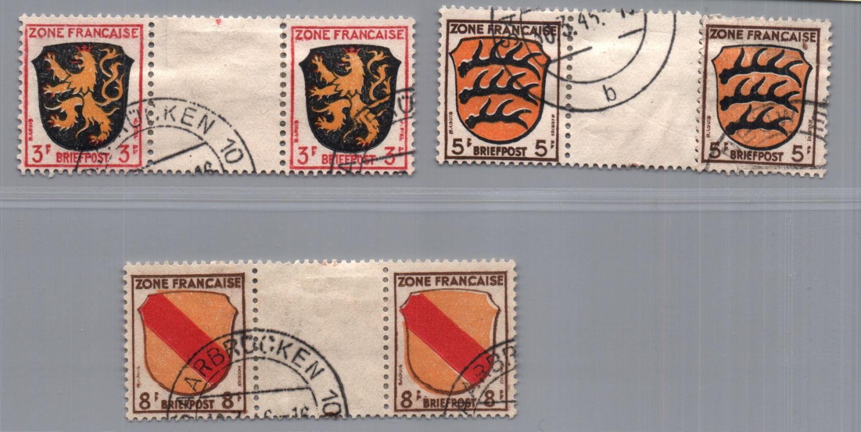Französische Zone Allg. Ausgabe Michel Nummer 2ZW - 4ZW gestempelt