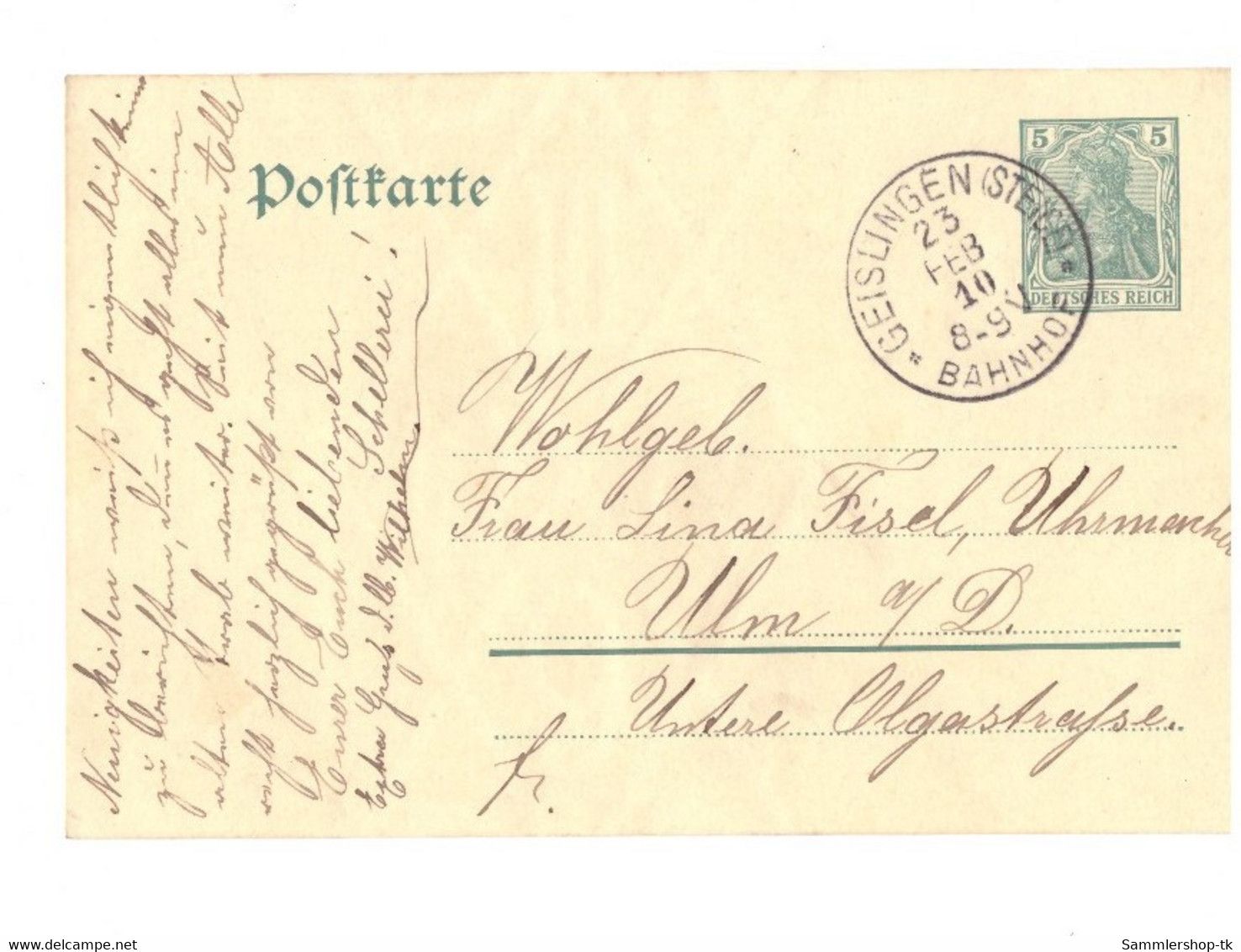 Ganzsache DR P78 gebraucht Geislingen (Staig) Bahnhof - nach Ulm